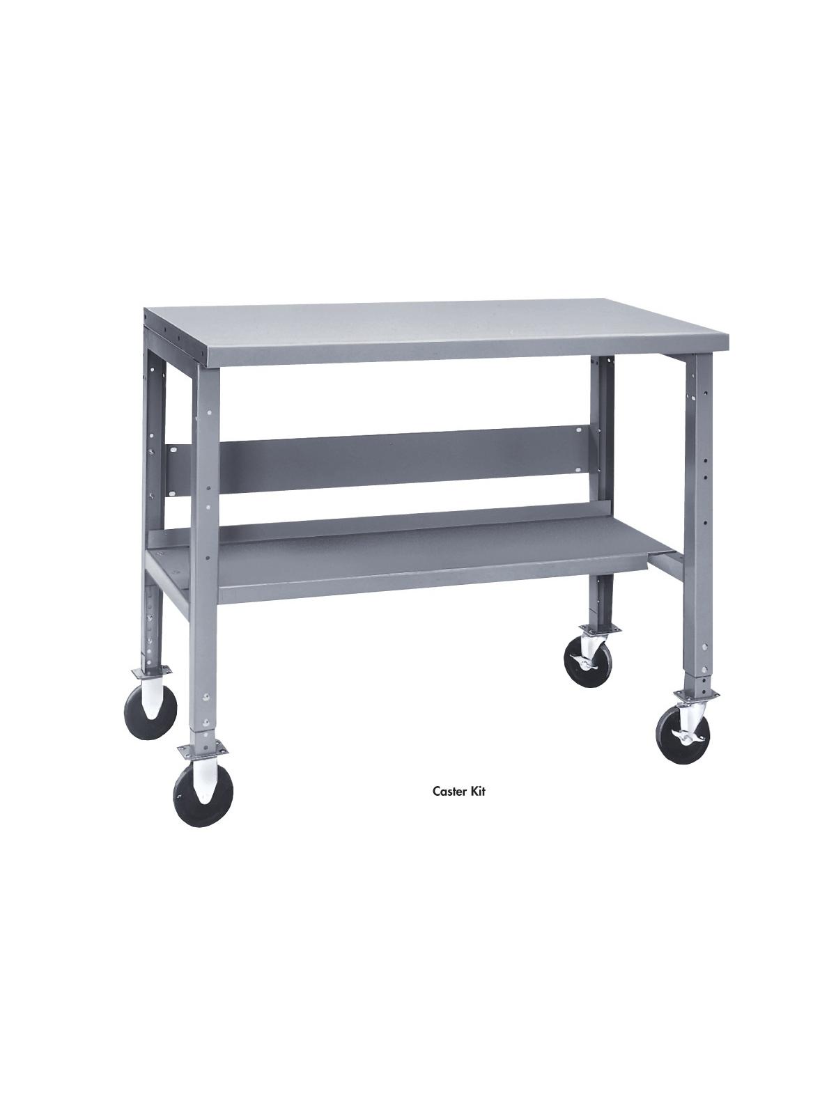 Caster Kit includes heavy-duty 5" dia. casters (2 rigid, 2 swivel with brakes). Caster Kit for use with Adjustable Height Channel Leg Work Benches only.