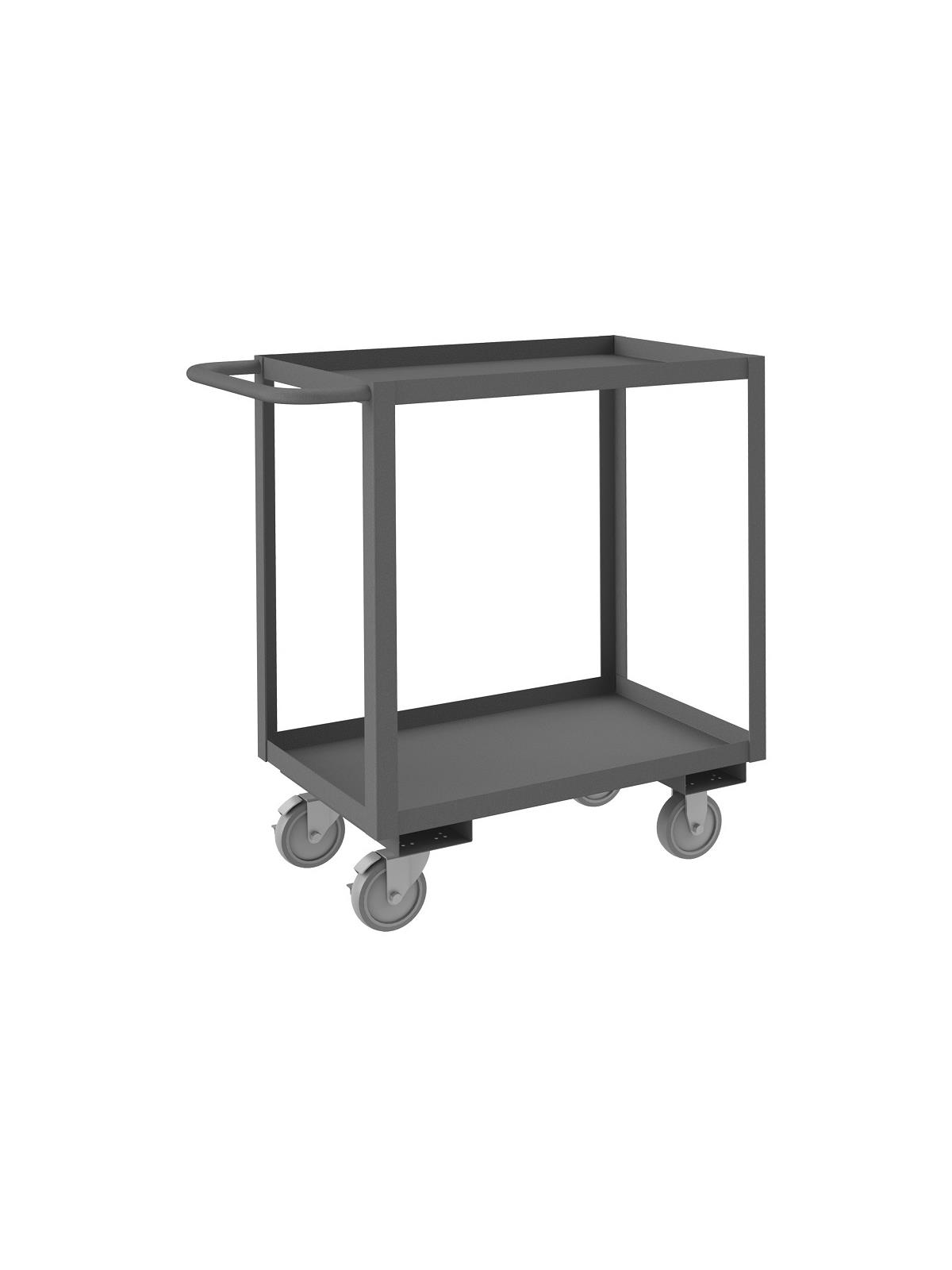 Shelf carts are constructed with 1-1/2" x 1/8" angle iron uprights for added strength. Heavy duty 14 gauge steel shelves. Sturdy tubular push handle. Perfect for transporting heavier parts or stock items. Shelf Stock Carts are available in 1,200 lbs. or 3,000 lbs. capacities. FOB Shipping Point.