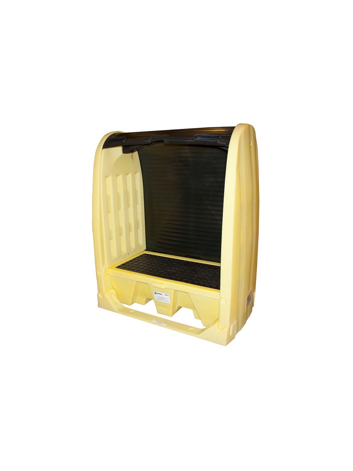 The convenience of outdoor storage meets the reliability of spill containment with the Hardcover. Lockable rolling doors provide access to drums from either side of the unit while offering additional accountability. The base of these products is a fully compliant spill pallet enclosed by a rugged, weather resistant shell. FOB Shipping Point.