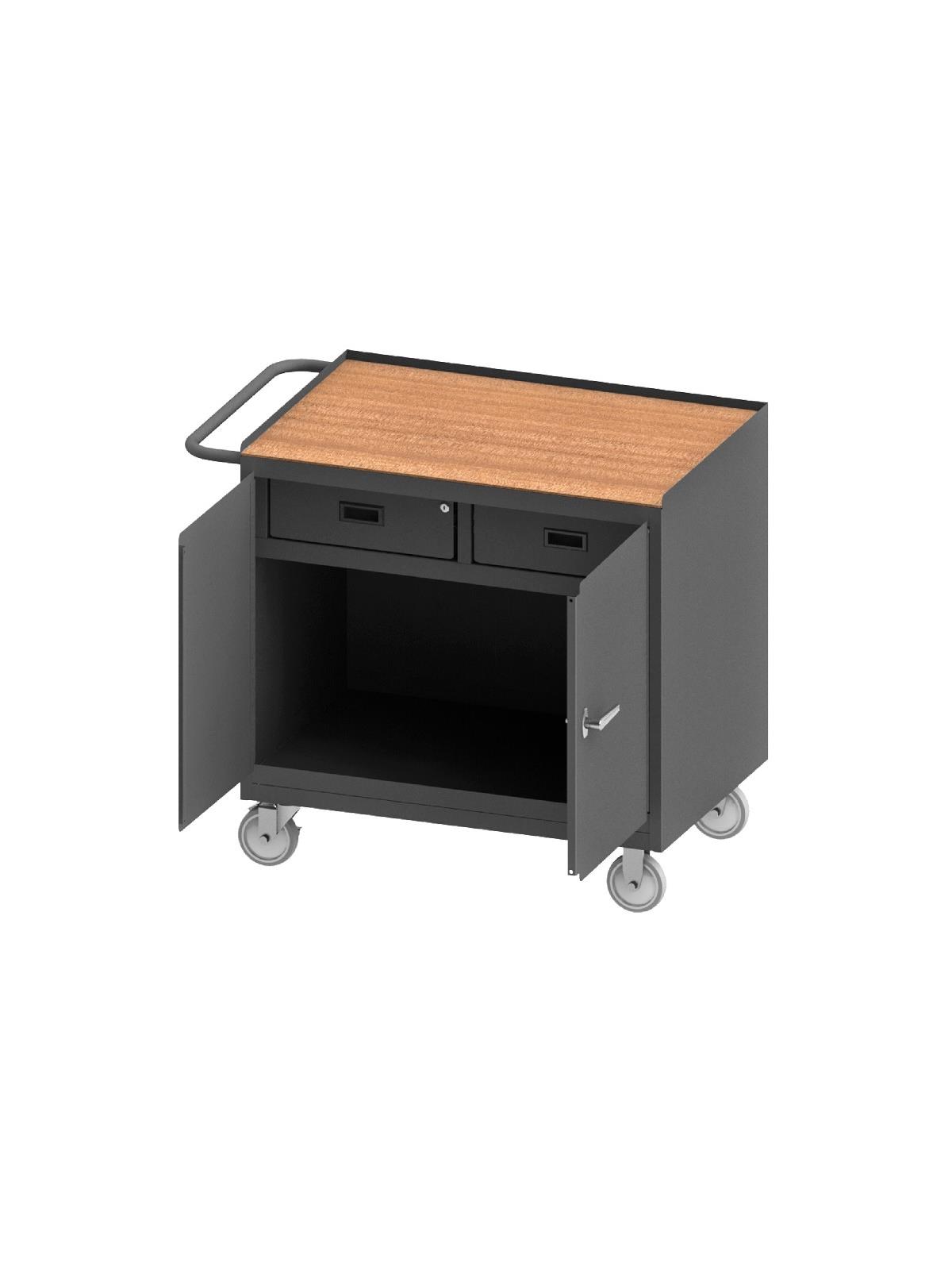 Bench cabinets are constructed of 14 gauge steel. Convenient sturdy work surface with back and end stops on the work surface prevents parts from falling off during transport (MT units not included). Tubular handle for easy maneuverability. Cabinet doors have a 3 point locking system with 4 keys. Rolls smoothly on 5" polyurethane bolt-on casters, (2) swivel with side brakes and (2) rigid. 36"W model has 1,200 lbs. capacity. 48"W model has 2,000 lbs. capacity and includes a floor lock to keep the unit in place while you work. FOB Shipping Point.