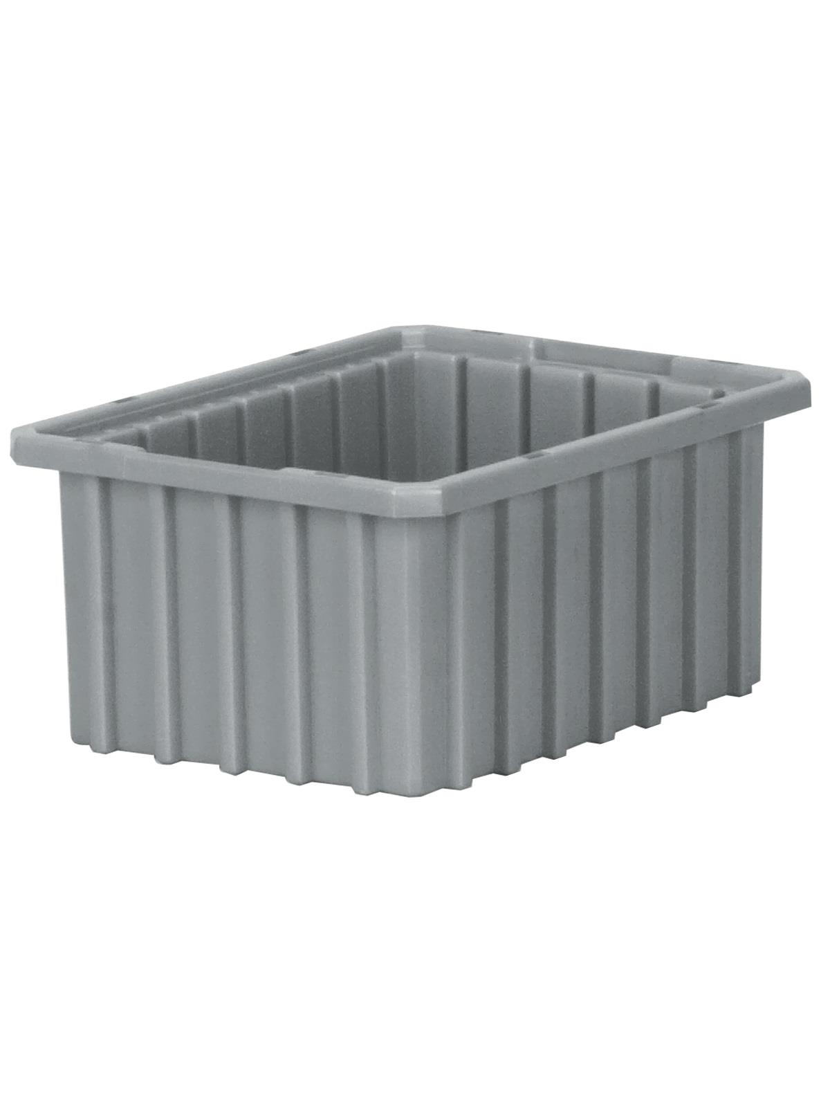 Intersecting dividers allow the container to be subdivided in separate compartments as small as 1-1/8" sq. Injection-molded from high density polyethylene -- resists most solvents and chemicals. Compatible with most racks, shelving and automated material handling equipment. Available in Red, Blue, or Gray. Dividers and lids sold separately. FOB Shipping Point.