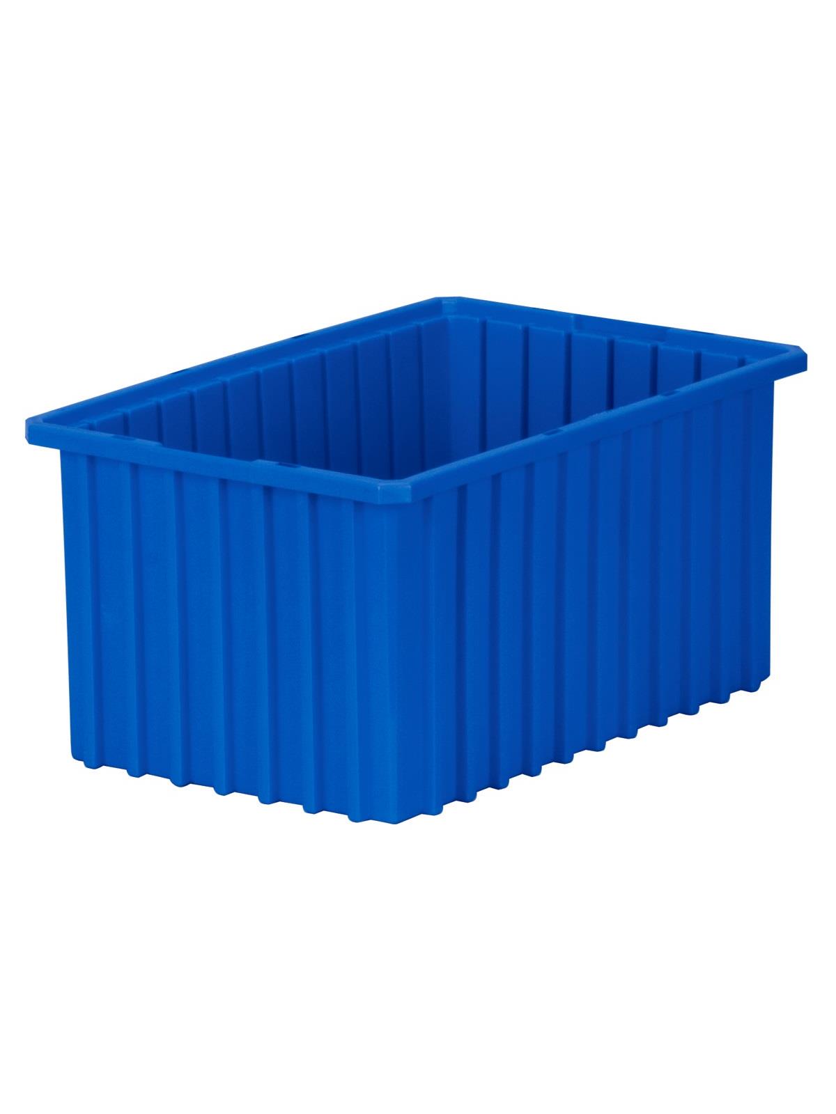 Intersecting dividers allow the container to be subdivided in separate compartments as small as 1-1/8" sq. Injection-molded from high density polyethylene -- resists most solvents and chemicals. Compatible with most racks, shelving and automated material handling equipment. Available in Red, Blue, or Gray. Dividers and lids sold separately. FOB Shipping Point.
