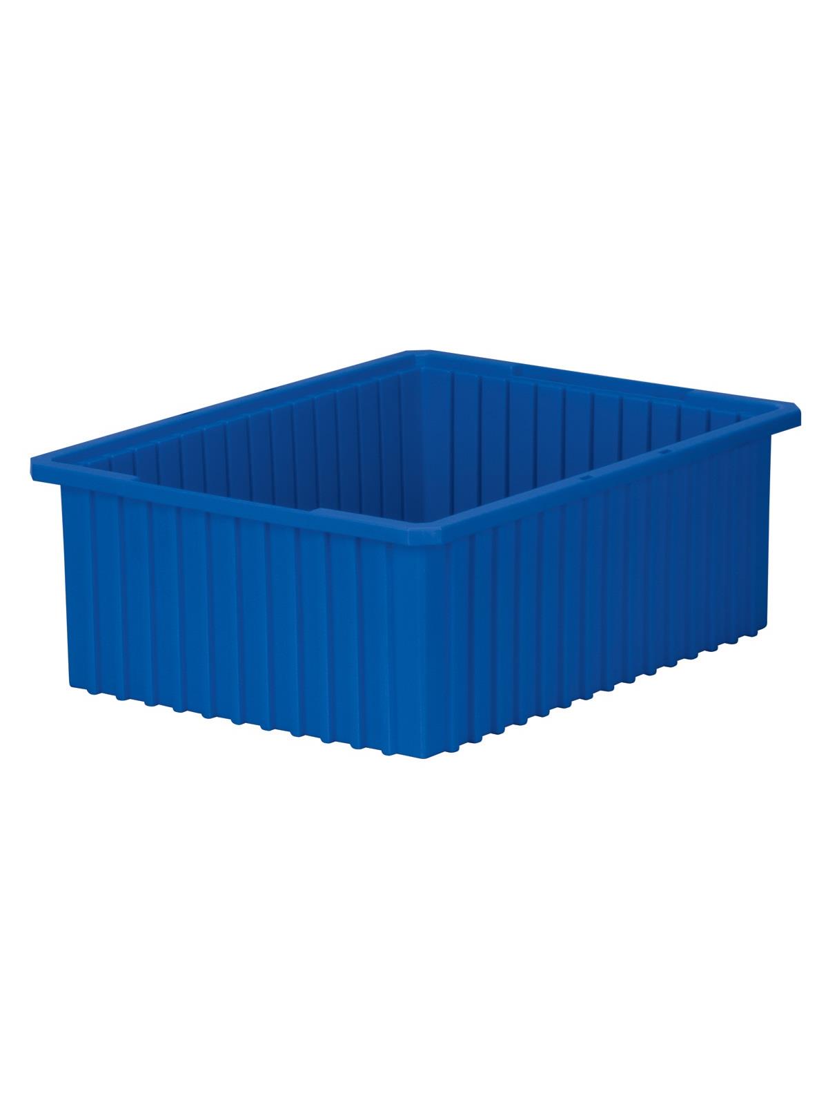 Intersecting dividers allow the container to be subdivided in separate compartments as small as 1-1/8" sq. Injection-molded from high density polyethylene -- resists most solvents and chemicals. Compatible with most racks, shelving and automated material handling equipment. Available in Red, Blue, or Gray. Dividers and lids sold separately. FOB Shipping Point.