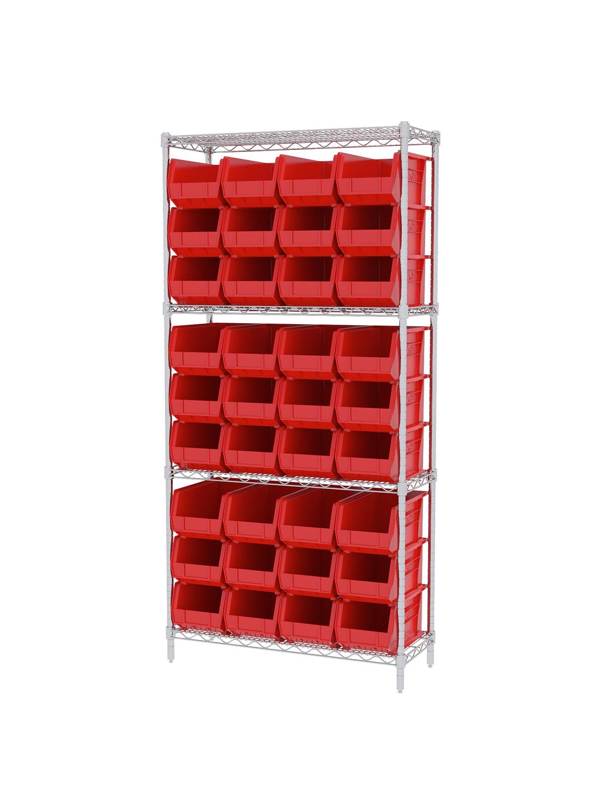 A wide variety of shelf configurations are possible with three sizes of shelving available. Durable AkroBins® feature a curved bottom hopper front, to enable easy access of small parts. Bins available in Blue, Red, Yellow, Stone, Green, or Semi-Clear. FOB Shipping Point.