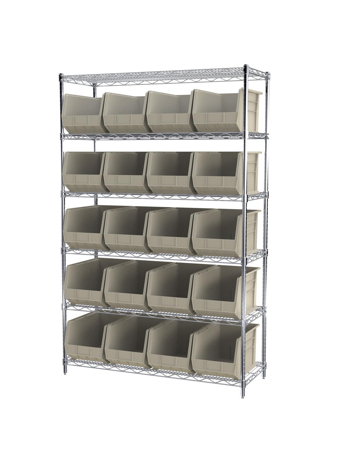 A wide variety of shelf configurations are possible with three sizes of shelving available. Durable AkroBins® feature a curved bottom hopper front, to enable easy access of small parts. Bins available in Blue, Red, Yellow, Stone, Green, or Semi-Clear. FOB Shipping Point.