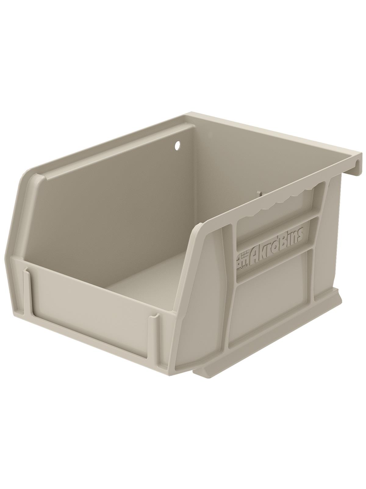 AkroBins are heavy-duty and securely stack on top of each other, sit on shelving, and hang from Akro-Mils racks, panels, rails and carts. Unaffected by weak acids and alkalis the sturdy one piece construction is water, rust and corrosion-proof. Finger grip allows for easy handling. Large label slot for easy identification of contents. Autoclavable up to 250° F. Guaranteed not to crack or break under normal load conditions as stated in the 1-year limited warranty. Optional dividers and labels available, see Related Items tab. AkroBins available in Red, Yellow, Blue, Green, Black, Stone, and Semi-Clear. FOB Shipping Point.