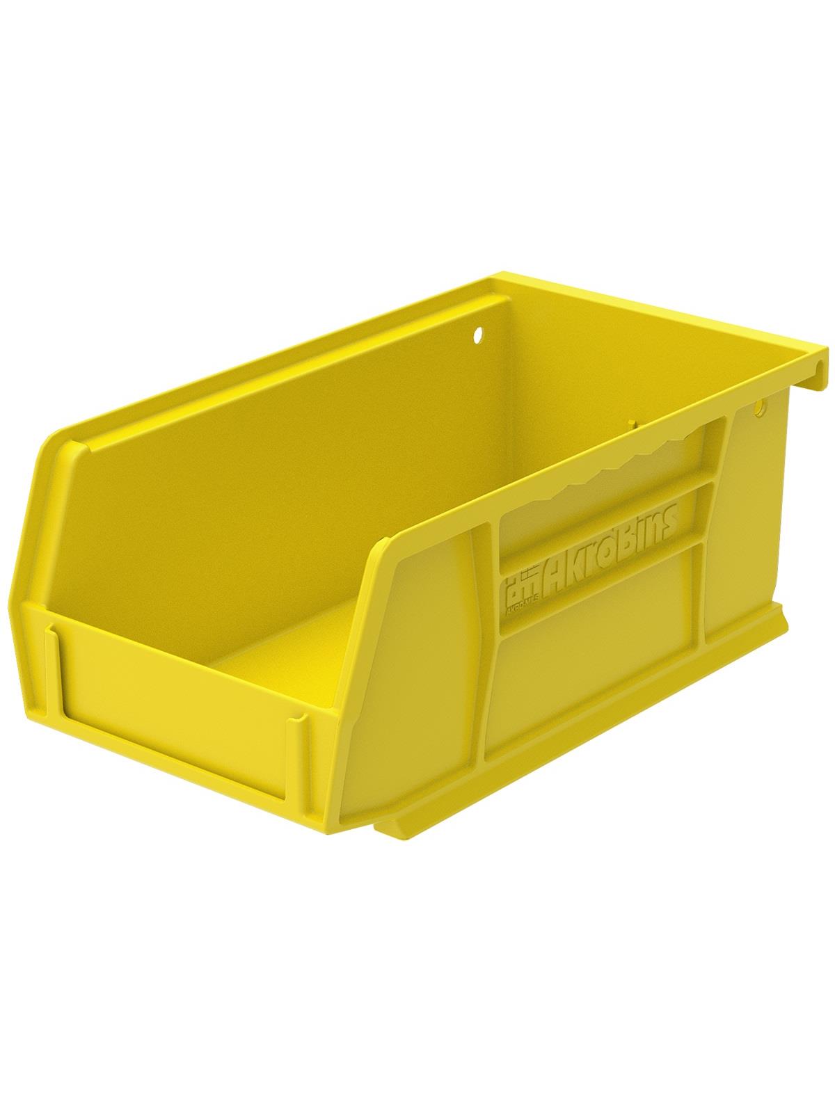 AkroBins are heavy-duty and securely stack on top of each other, sit on shelving, and hang from Akro-Mils racks, panels, rails and carts. Unaffected by weak acids and alkalis the sturdy one piece construction is water, rust and corrosion-proof. Finger grip allows for easy handling. Large label slot for easy identification of contents. Autoclavable up to 250° F. Guaranteed not to crack or break under normal load conditions as stated in the 1-year limited warranty. Optional dividers and labels available, see Related Items tab. AkroBins available in Red, Yellow, Blue, Green, Black, Stone, and Semi-Clear. FOB Shipping Point.