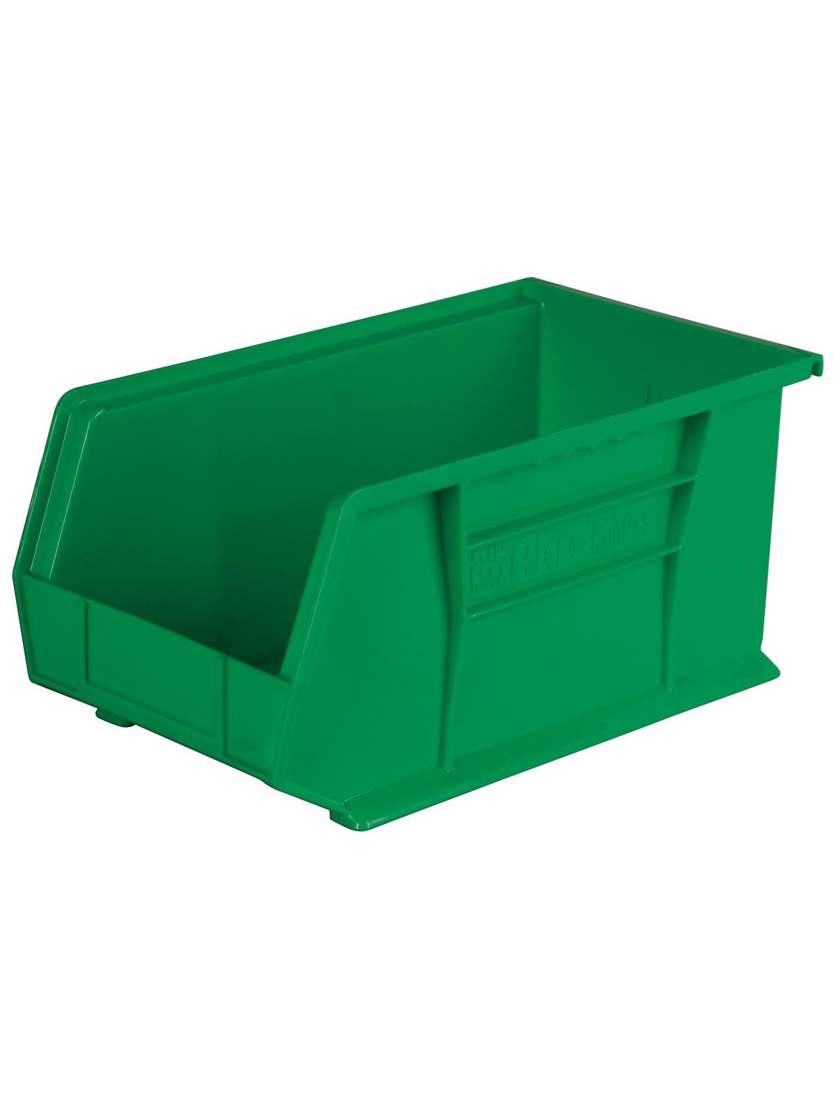 AkroBins are heavy-duty and securely stack on top of each other, sit on shelving, and hang from Akro-Mils racks, panels, rails and carts. Unaffected by weak acids and alkalis the sturdy one piece construction is water, rust and corrosion-proof. Finger grip allows for easy handling. Large label slot for easy identification of contents. Autoclavable up to 250° F. Guaranteed not to crack or break under normal load conditions as stated in the 1-year limited warranty. Optional dividers and labels available, see Related Items tab. AkroBins available in Red, Yellow, Blue, Green, Black, Stone, and Semi-Clear. FOB Shipping Point.