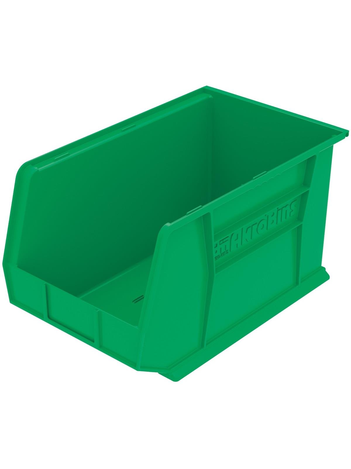 AkroBins are heavy-duty and securely stack on top of each other, sit on shelving, and hang from Akro-Mils racks, panels, rails and carts. Unaffected by weak acids and alkalis the sturdy one piece construction is water, rust and corrosion-proof. Finger grip allows for easy handling. Large label slot for easy identification of contents. Autoclavable up to 250° F. Guaranteed not to crack or break under normal load conditions as stated in the 1-year limited warranty. Optional dividers and labels available, see Related Items tab. AkroBins available in Red, Yellow, Blue, Green, Black, Stone, and Semi-Clear. FOB Shipping Point.