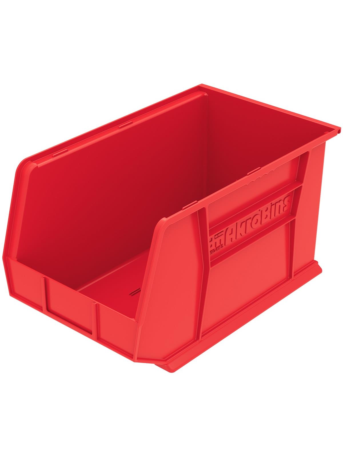 AkroBins are heavy-duty and securely stack on top of each other, sit on shelving, and hang from Akro-Mils racks, panels, rails and carts. Unaffected by weak acids and alkalis the sturdy one piece construction is water, rust and corrosion-proof. Finger grip allows for easy handling. Large label slot for easy identification of contents. Autoclavable up to 250° F. Guaranteed not to crack or break under normal load conditions as stated in the 1-year limited warranty. Optional dividers and labels available, see Related Items tab. AkroBins available in Red, Yellow, Blue, Green, Black, Stone, and Semi-Clear. FOB Shipping Point.