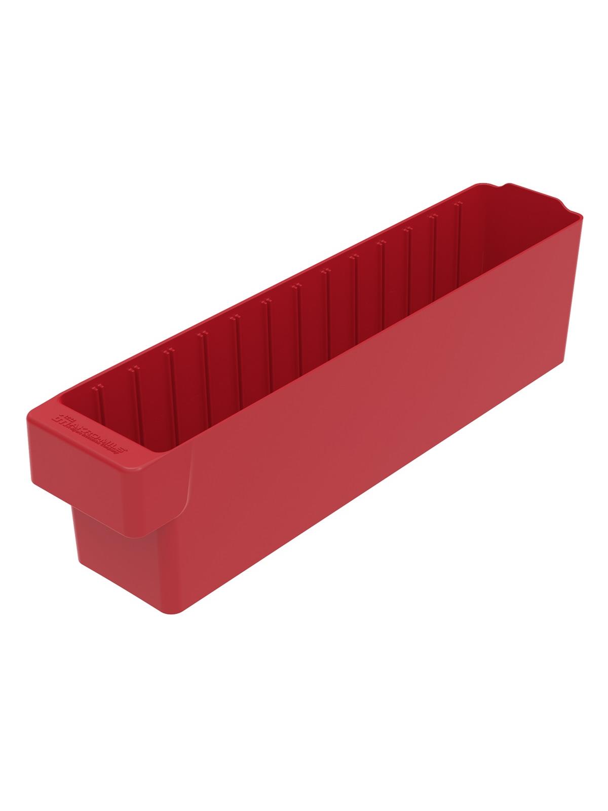 Offered in 12" or 18" depths to work with compatible shelving. Easy to label and color code inventory for quick identification of parts and supplies. Drawers can be stacked to optimize space. Wide front handle for easy gripping when AkroDrawers are loaded or contain heavy contents. Can be used with available shelving, racks, mobile carts or can be used by themselves. Sturdy back stop tab ensures AkroDrawers can hang securely from shelves. Dividers are available to keep contents neatly separated in drawers. Available in Blue, Gray, Yellow, Red and Clear - Minimum order required. FOB Shipping Point.