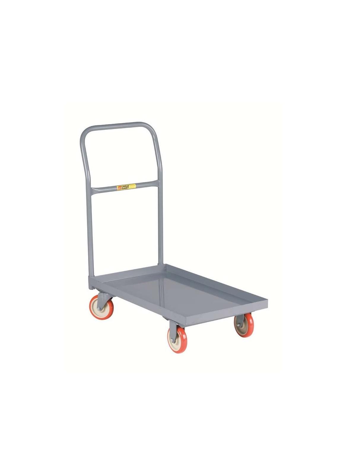 This solid, yet economical pallet truck is fully assembled and ready for use. These all welded steel pallet trucks are built for long, trouble-free service in medium duty applications. Removable cross-brace handle extends 28" high above the reinforced formed steel deck. Steel deck is available with flush edges or a 1-1/2" retaining lip. FOB Shipping Point.