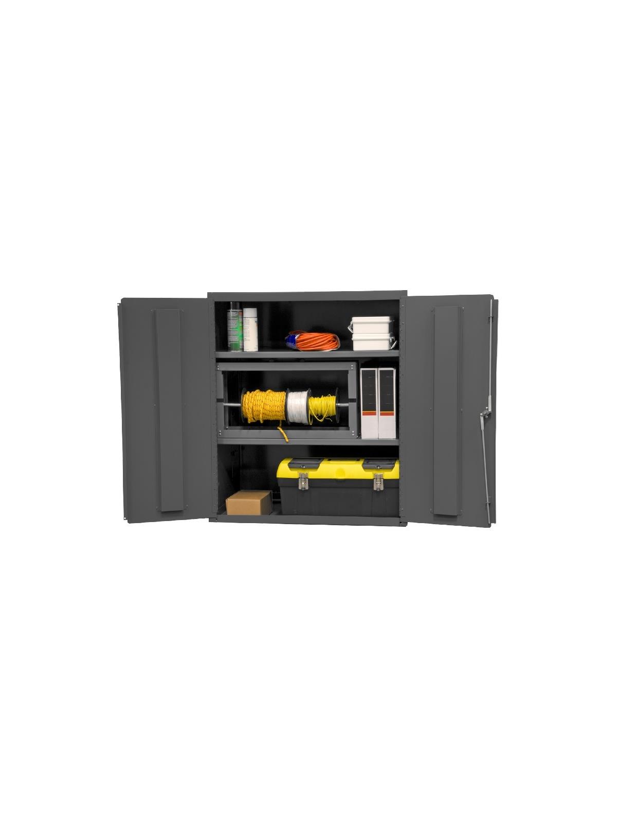 Choose from ten models to store, sort and organize. Construction features not found anywhere else. Ideal for factories, warehouses or offices. Securely store tools, parts and supplies. Doors swing effortlessly. Doors also feature three point locking handle and two keys. Durable gray powder coat finish. FOB Shipping Point.