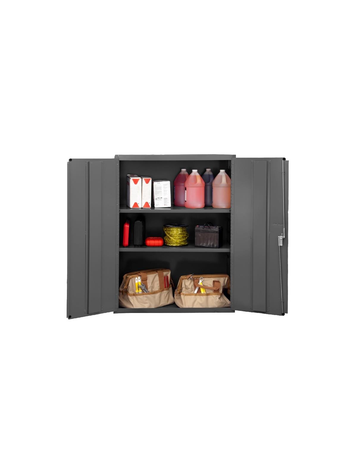 Choose from ten models to store, sort and organize. Construction features not found anywhere else. Ideal for factories, warehouses or offices. Securely store tools, parts and supplies. Doors swing effortlessly. Doors also feature three point locking handle and two keys. Durable gray powder coat finish. FOB Shipping Point.