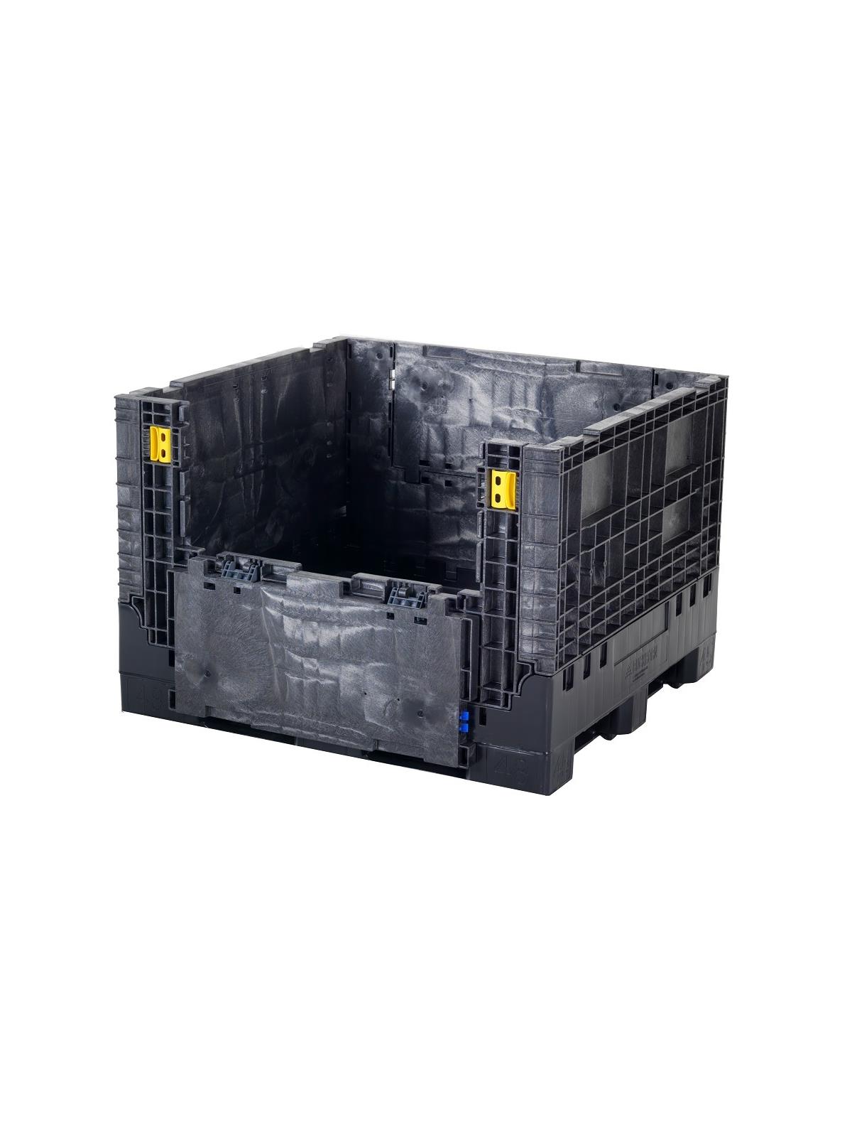 Bulk boxes are great for automotive and industrial manufacturing uses. Durable HDPE construction with thicker sidewalls and high strength bases. Boxes stack securely. Four-way forklift entry. Two doors on length standard. Black in color. FOB Shipping Point.