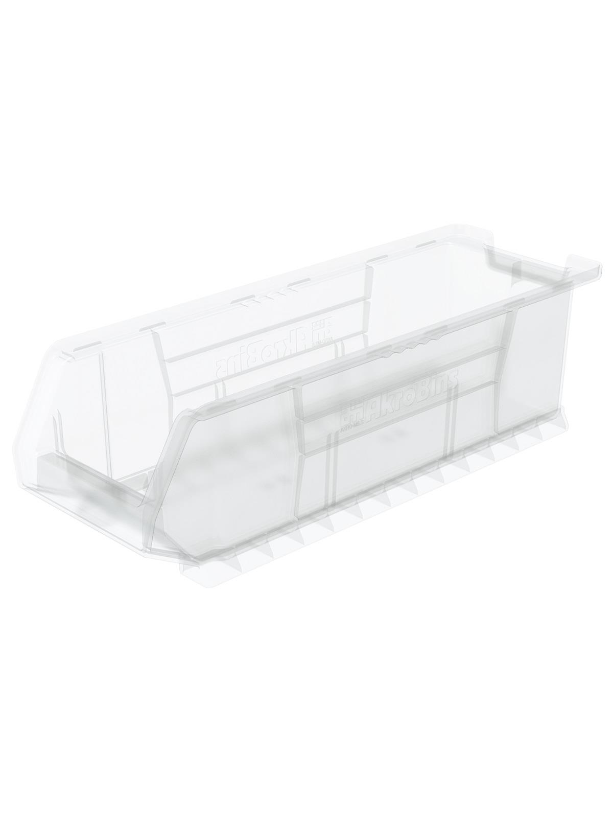 20", 24" and 30" Deep Clear Bins for Super-Size Storage. Large capacity storage bins for organizing heavy or bulky items. Heavy-duty bins molded in clear polypropylene. Extra large stacking containers feature anti-slide stop to prevent bins from shifting forward. Reinforced side ribs add strength and prevent spreading when stacked or loaded. Optional lids and dividers available. FOB Shipping Point.