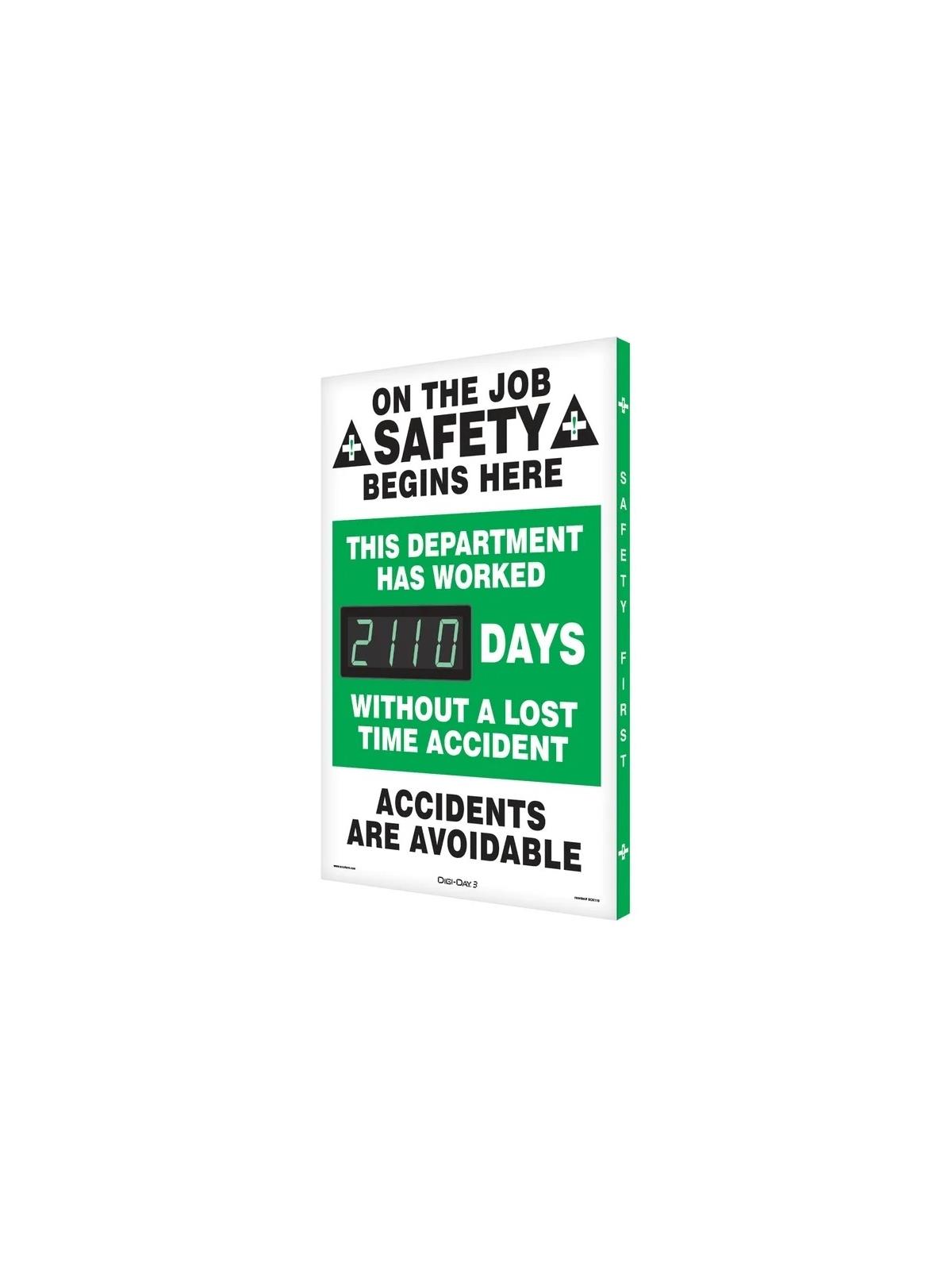 Electronic LED display advances automatically each day, eliminates the hassle of manually updating the safe day numbers. Safety Scoreboard with bright, digital display provides an eye-catching way to inform and alert employees, contractors, and visitors on tracking of safe work days in the workplace, as it counts up. FOB Shipping Point.