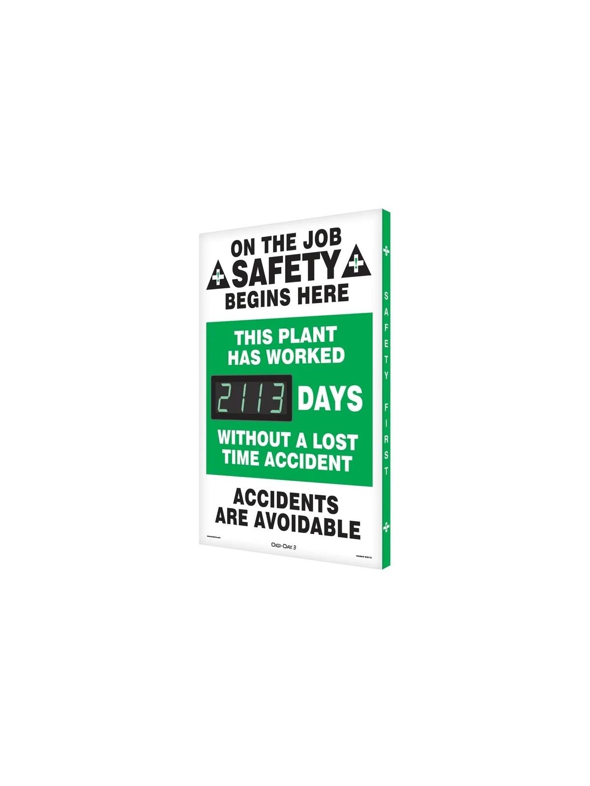 Electronic LED display advances automatically each day, eliminates the hassle of manually updating the safe day numbers. Safety Scoreboard with bright, digital display provides an eye-catching way to inform and alert employees, contractors, and visitors on tracking of safe work days in the workplace, as it counts up. FOB Shipping Point.