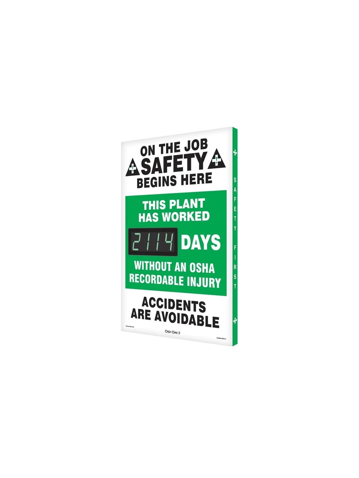 Electronic LED display advances automatically each day, eliminates the hassle of manually updating the safe day numbers. Safety Scoreboard with bright, digital display provides an eye-catching way to inform and alert employees, contractors, and visitors on tracking of safe work days in the workplace, as it counts up. FOB Shipping Point.