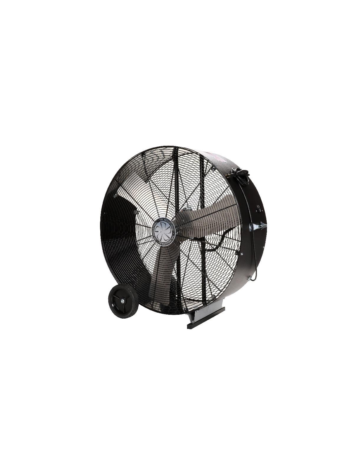 Motor is dependable 1-speed, 1 phase, 115V ball bearing open drip proof permanently lubricated permanent split capacitor. Rocker switch. Aluminum blade. Safety guards are spiral wire front and rear. Cord is SJT type 3 conductor, 15'L. Rolls easily on 8" hard rubber wheels. Meets OSHA standards. ETL C/US listed. FOB Shipping Point.