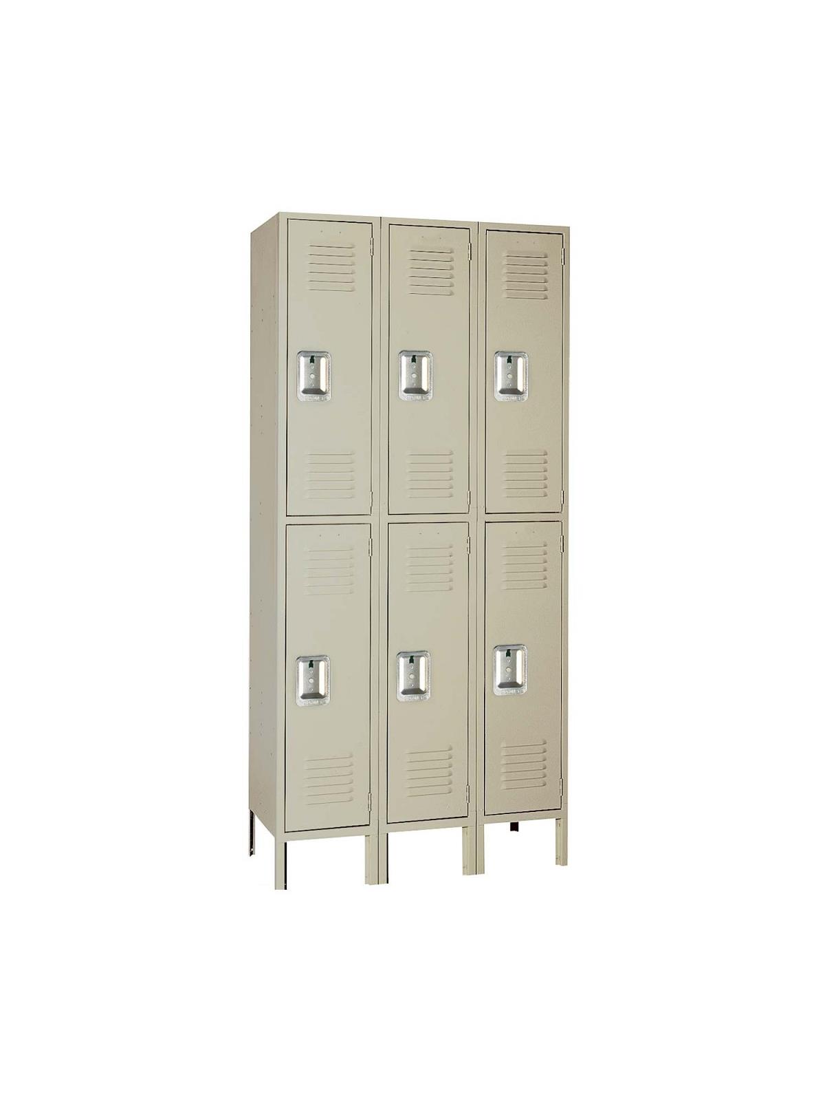 Double Tier Lockers - Features steel recessed handle and hooks for hanging clothing and other items.