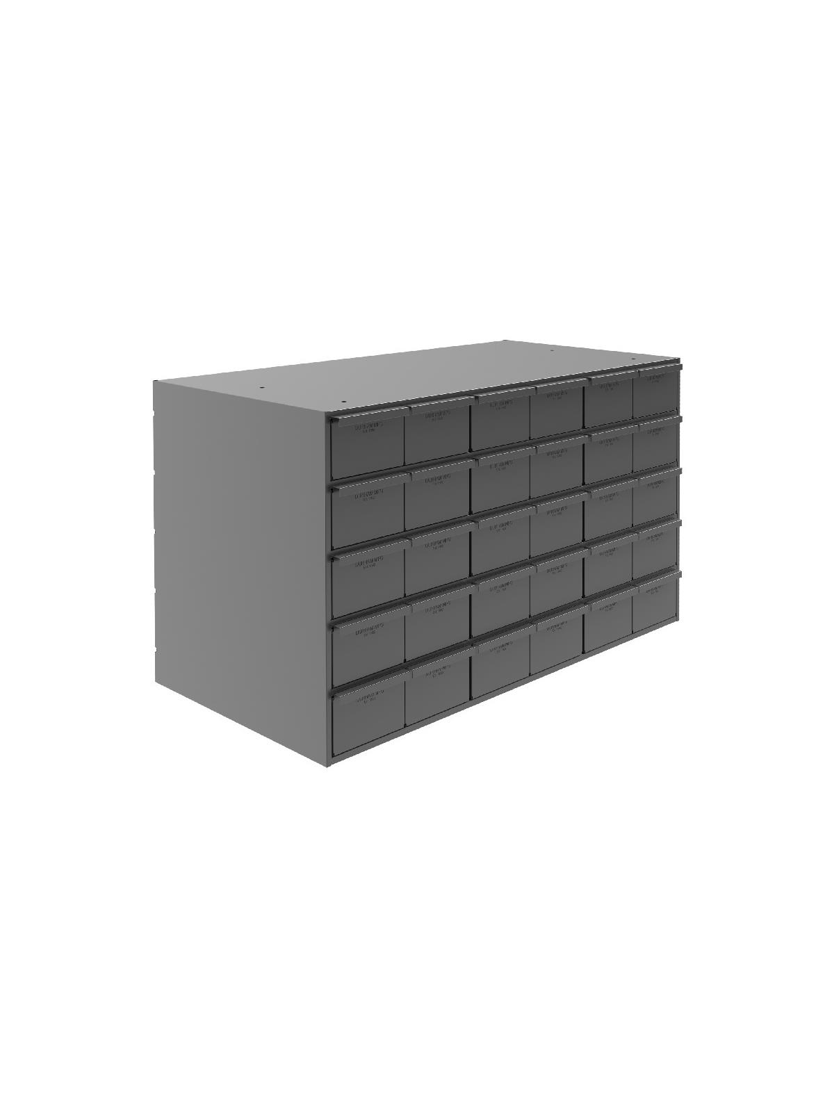All-welded heavy-duty frame features vertical support for extra stacking strength. A positive stop mechanism prevents drawers from falling out. Drawers also feature double interlocked design for additional rigidity. Full-width handles for a firm grip. Each drawer complete with 2 adjustable dividers. Extra dividers sold below. Fits standard shelving. Finished in rust and acid resistant Gray powder coat. Fully assembled. FOB Shipping Point.