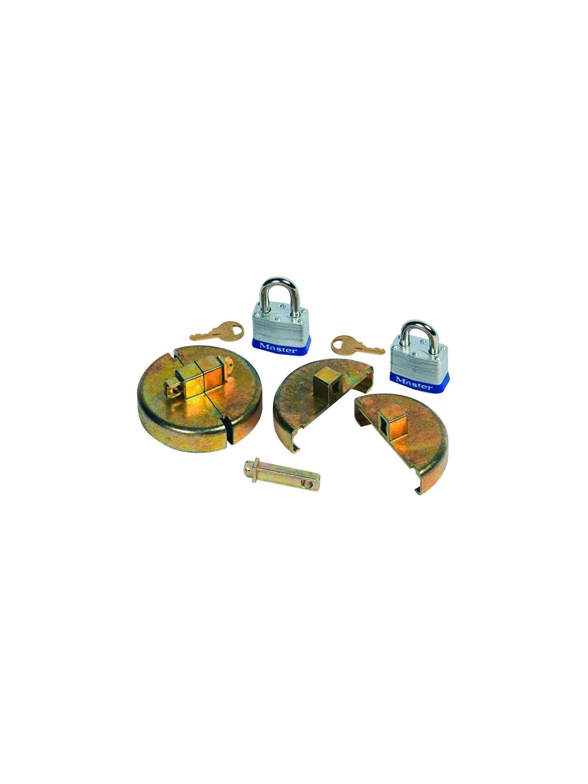 Drum locks are a cost effective solution to controlling storage concerns for all types of liquids, semi-liquids, and powders that come in standard drums. Made of corrosion resistant, non-sparking zinc die cast, the units easily install around the drum bung glange with no risk of cross threading. Sold as pairs, these drum locks fit the most popular styles of steel and plastic 55-gallon drums. The steel set includes two units; one to fit over the 2" NPT plug, and the other to fit over the 3/4" NPT plug. The plastic set includes two units which fit over both 2" plugs. FOB Shipping Point.