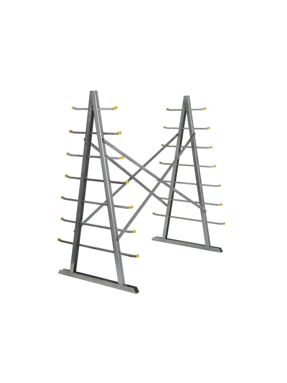 HSR-SS Series - Self supporting 66” high A frame features 7 storage levels with an evenly distributed load capacity of 2,000 lbs. Arms extend up to 12” beyond A-Frame. Base measures 60” x 36”. Bright zinc plating provides a long term, attractive appearance. Shipped KD with quick and convenient assembly.