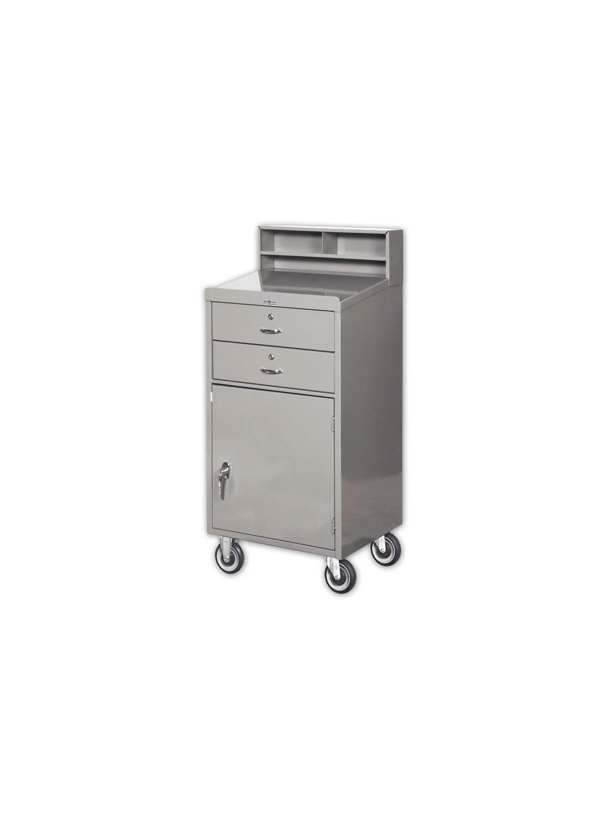 • Closed style: two locking drawers, one locking cabinet, 5" polyurethane casters (2 rigid, 2 swivel).