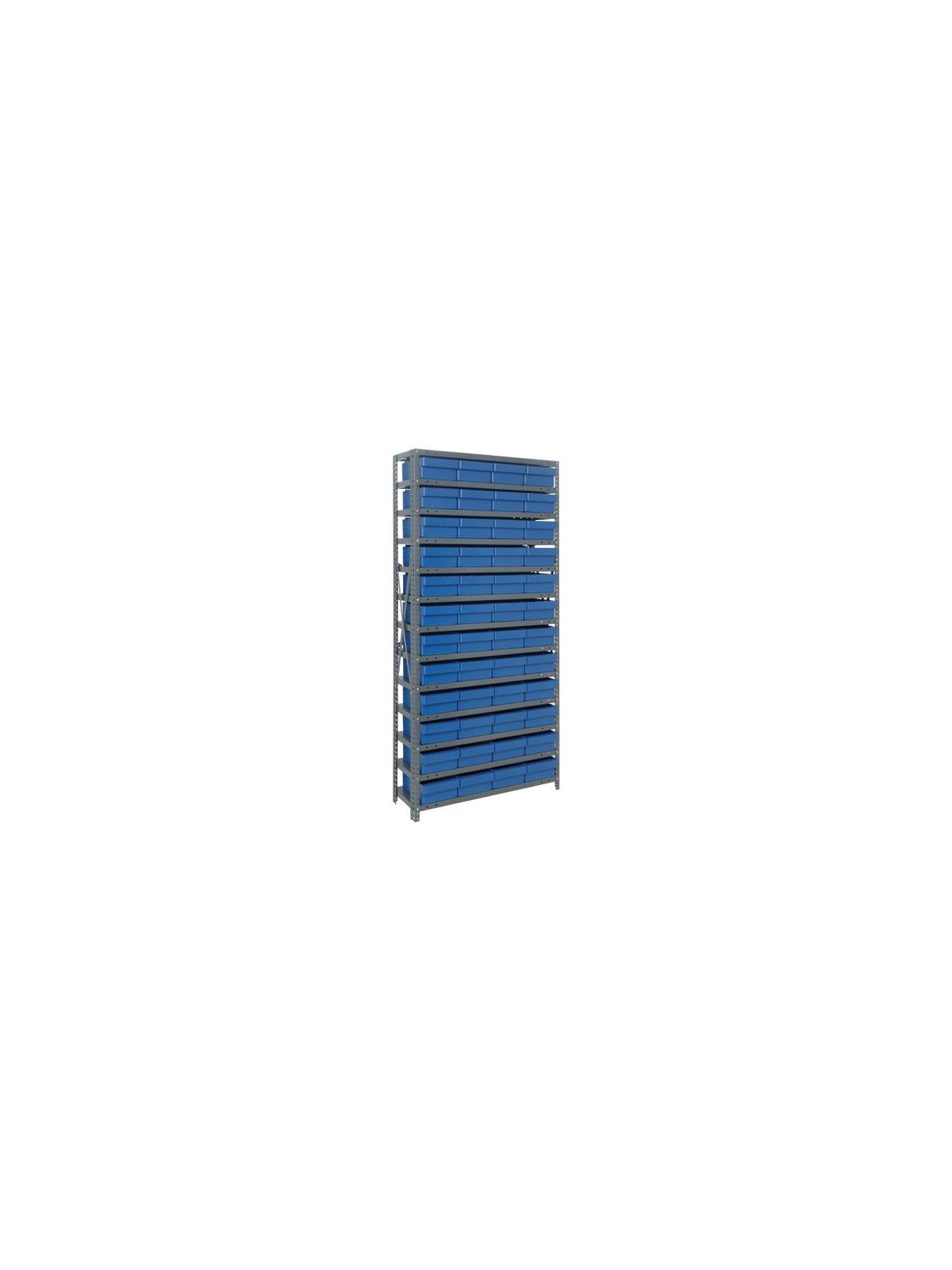 Heavy Duty Steel Shelving Units - Save time locating parts using our tough Euro Drawers with our sturdy open or closed steel shelving. 36" wide x 75" or 39" high units offer heavy-duty, high grade shelving with a 400 lb. capacity per shelf. Closed shelving provides a dust free environment for stored parts. Shelving is Gray in color. Drawers are available in Blue, Yellow, Gray or Red. FOB Shipping Point.