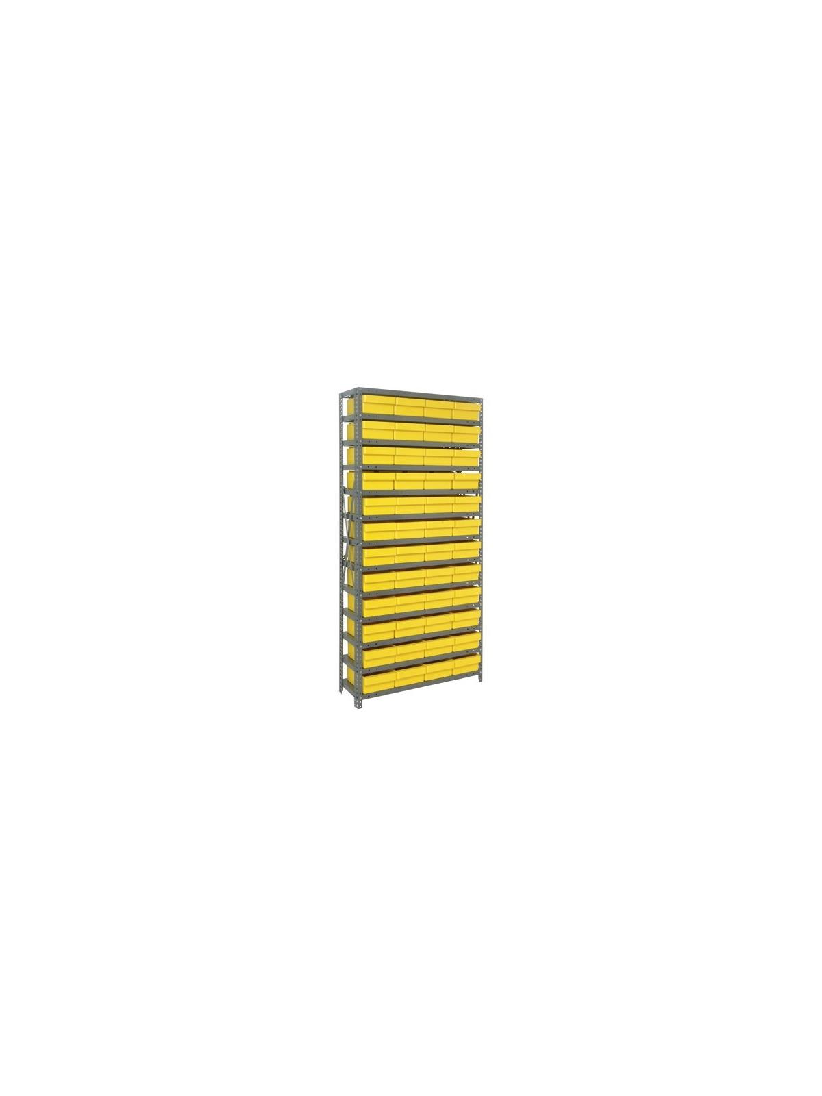 Heavy Duty Steel Shelving Units - Save time locating parts using our tough Euro Drawers with our sturdy open or closed steel shelving. 36" wide x 75" or 39" high units offer heavy-duty, high grade shelving with a 400 lb. capacity per shelf. Closed shelving provides a dust free environment for stored parts. Shelving is Gray in color. Drawers are available in Blue, Yellow, Gray or Red. FOB Shipping Point.
