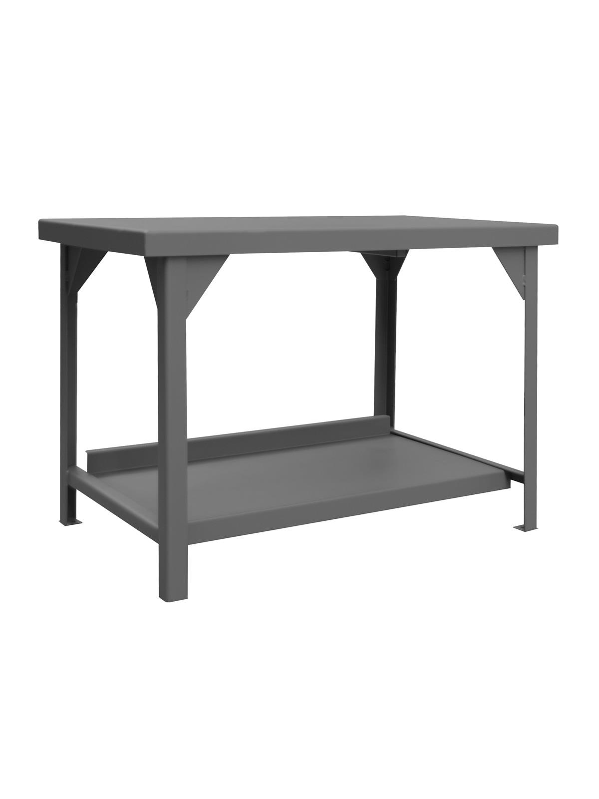 Products with top shelf risers used as shelf and back splash. See Related Items tab for Drawer for Durham Work Benches.