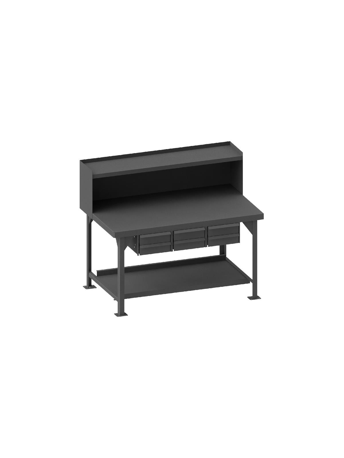 Description Workbench with Drawers and Top Shelf Riser