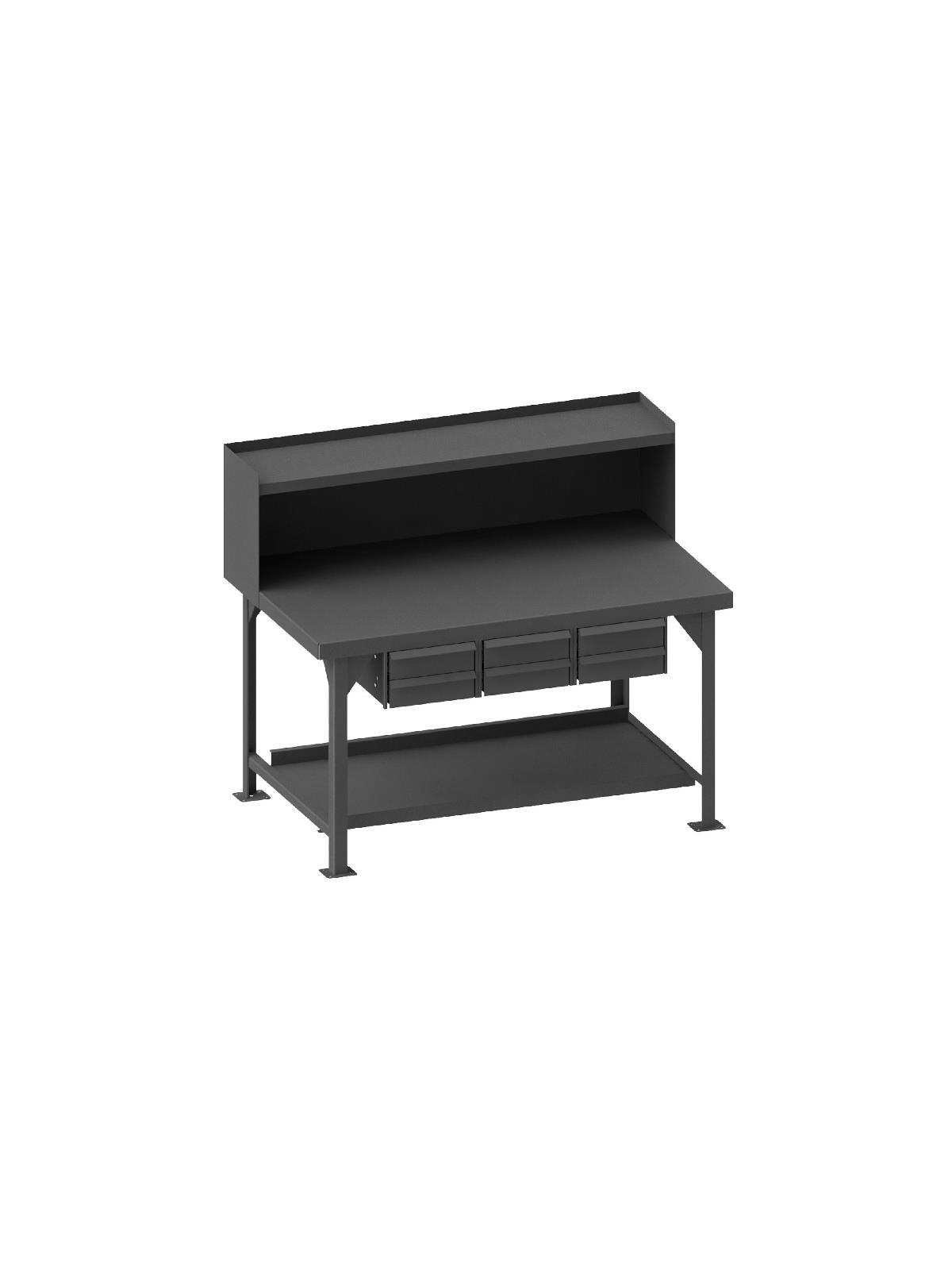 Description Workbench with Drawers and Top Shelf Riser