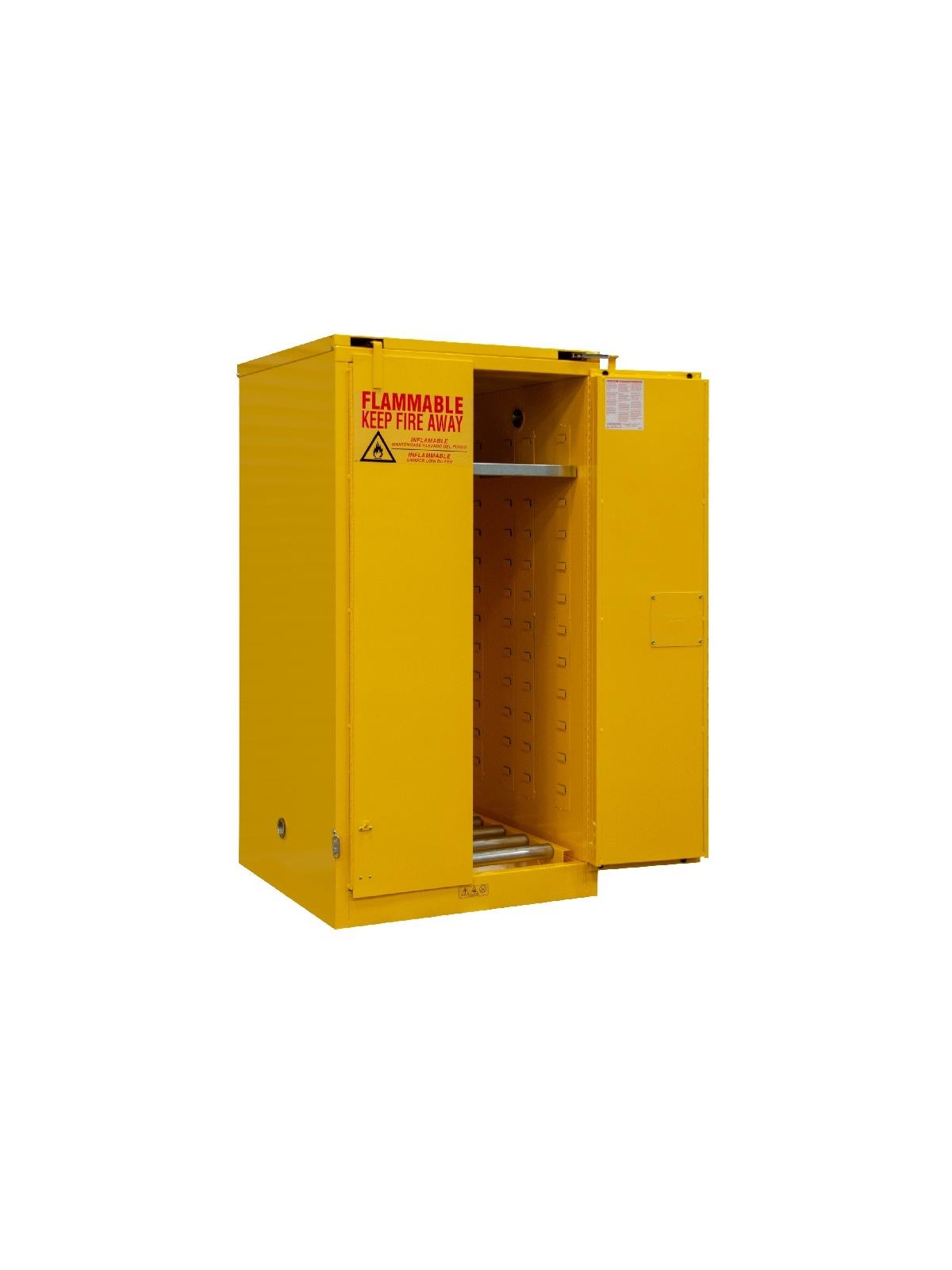 Flammable Storage Cabinets are required by OSHA and UFC in commercial and industrial facilities where flammable liquids are used and stored. Cabinets feature recessed lockable paddle latch and 3 point locking systems which greatly improves security. Bunged air vents on each side of the cabinet allows for greater ventilation. Constructed of all welded Heavy Duty Steel.