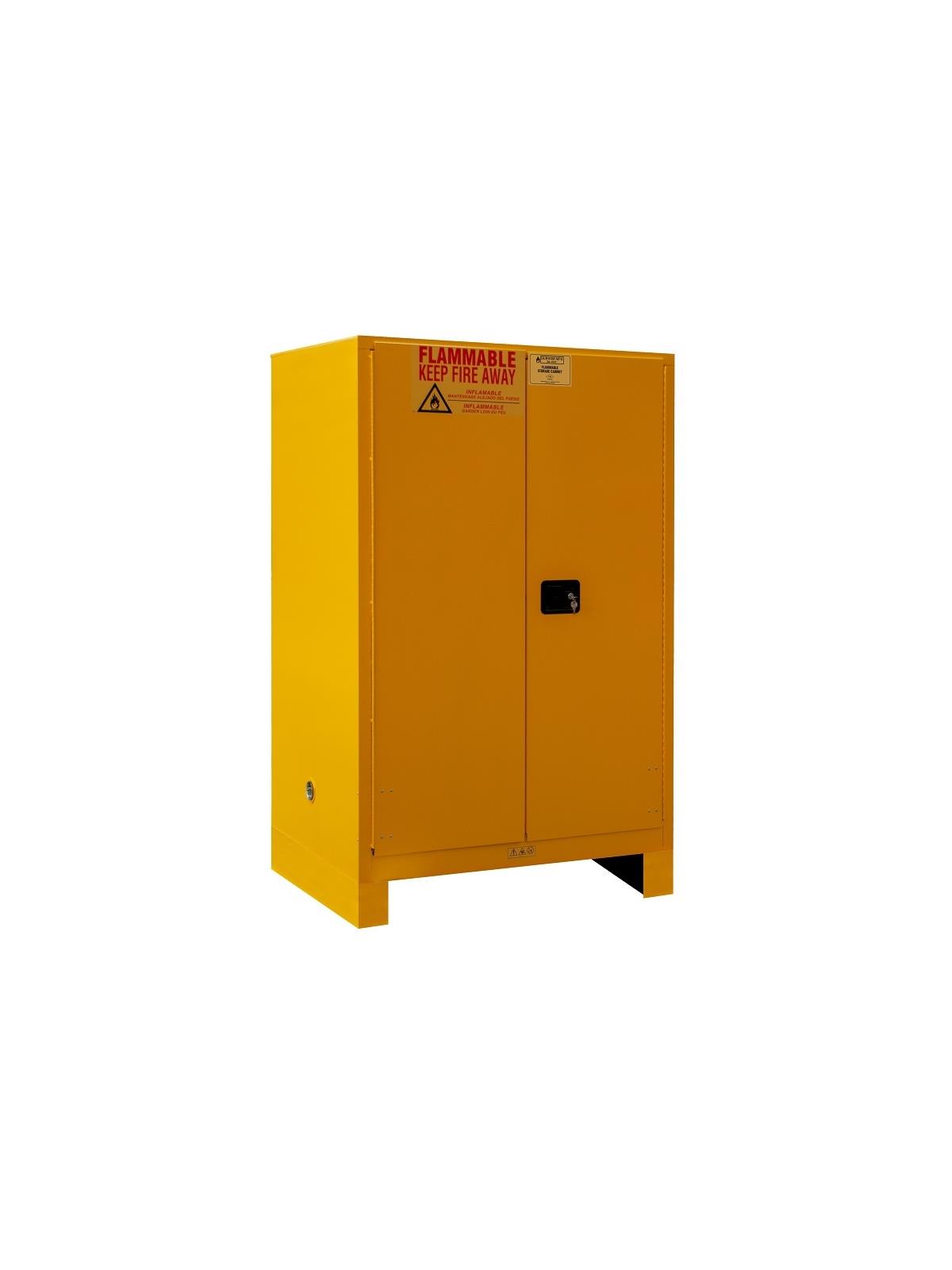 Flammable Storage Cabinets are required by OSHA and UFC in commercial and industrial facilities where flammable liquids are used and stored. Cabinets feature recessed lockable paddle latch and 3 point locking systems which greatly improves security. Bunged air vents on each side of the cabinet allows for greater ventilation. Constructed of all welded Heavy Duty Steel.