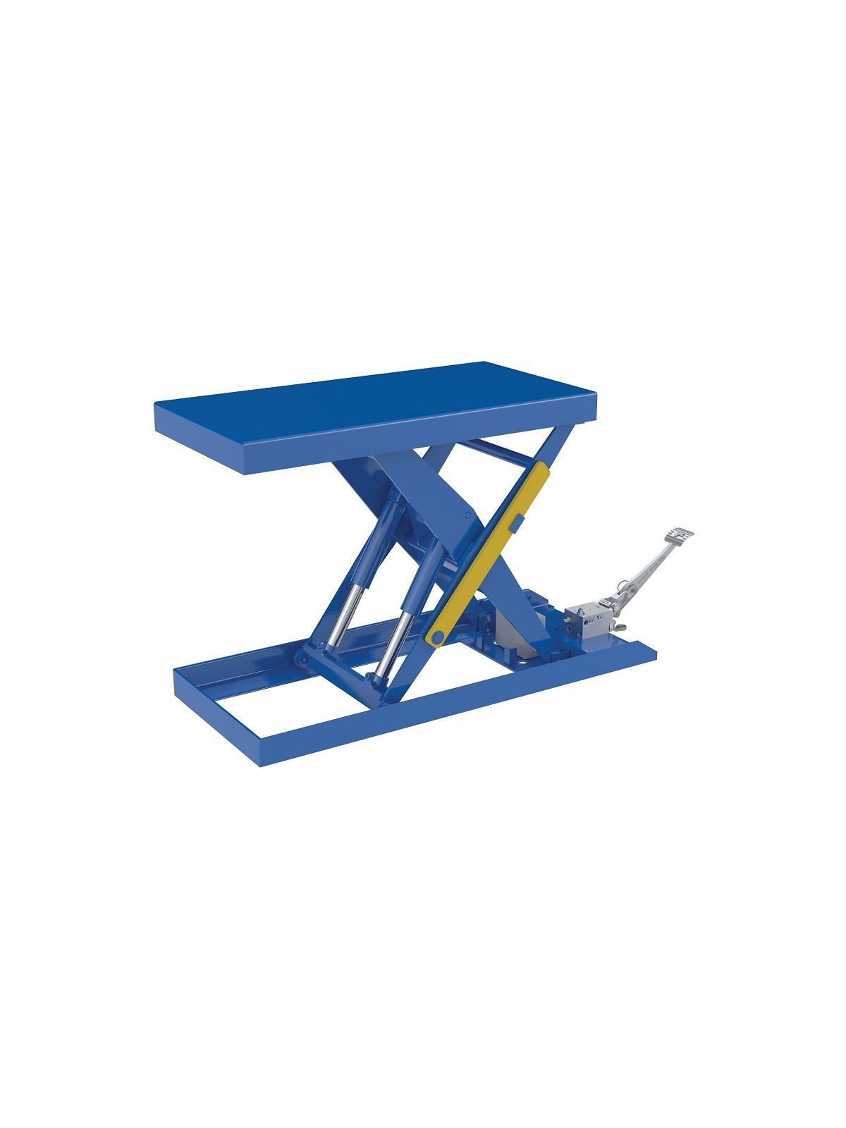 Foot Pump Scissor Lift Tables are used by all types of manufacturing and warehousing facilities. Features torsion tubes for side to side stability, pressure flow control valve for controlled lowering, and foot pump. Rugged welded steel construction. Painted blue finish. FOB Shipping Point.
