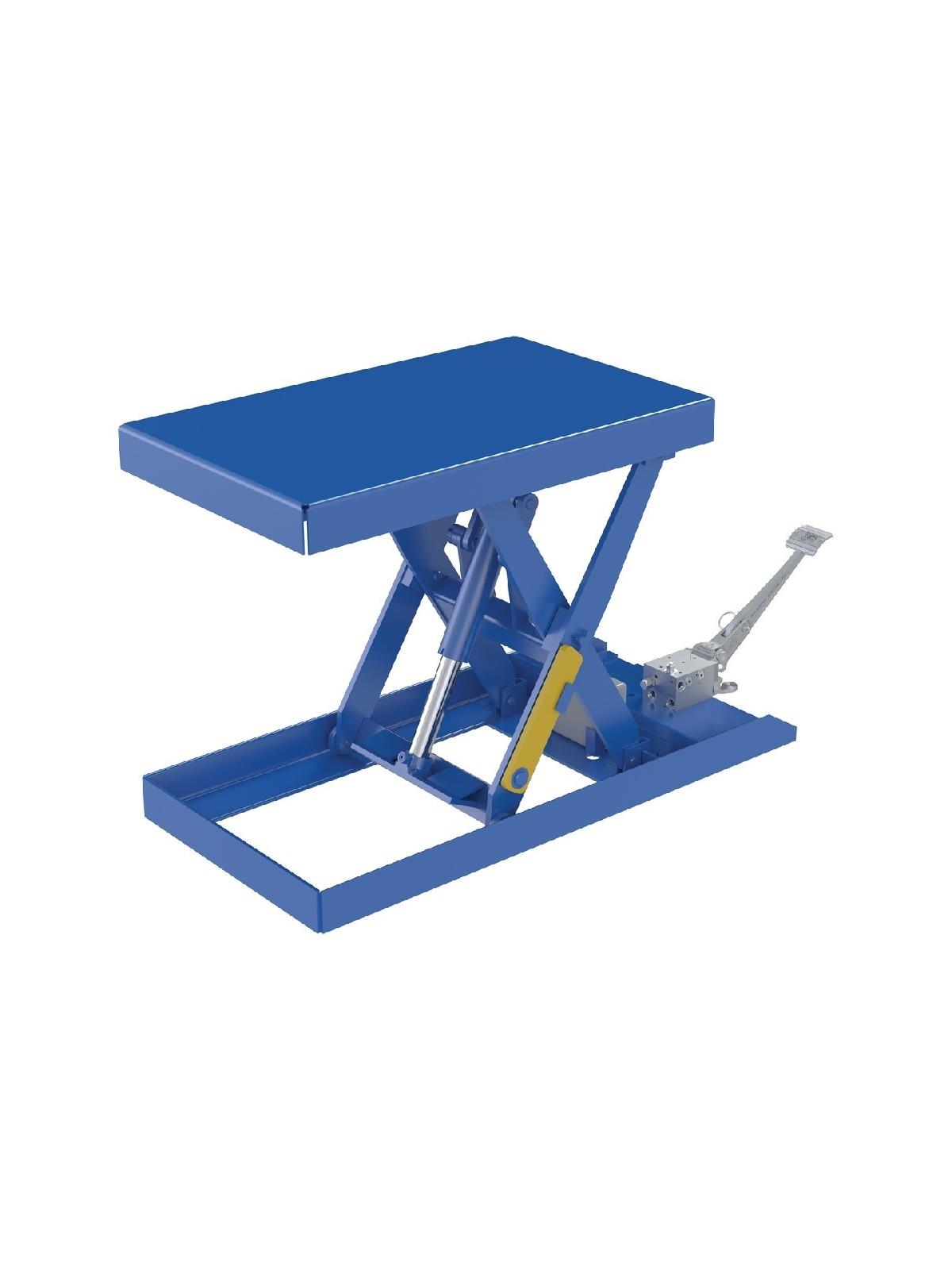 Foot Pump Scissor Lift Tables are used by all types of manufacturing and warehousing facilities. Features torsion tubes for side to side stability, pressure flow control valve for controlled lowering, and foot pump. Rugged welded steel construction. Painted blue finish. FOB Shipping Point.