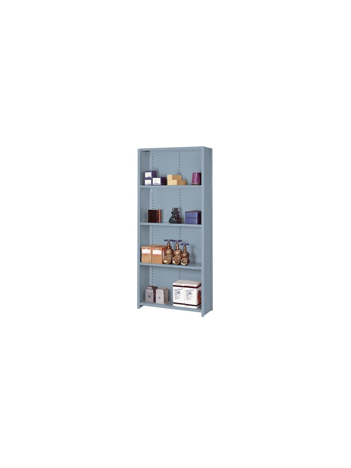 Pre-engineered sections 36"W. x 84"H. and features lapped and welded shelf corners for additional strength and durability. Upright posts are roll formed "T" members that allow shelves to adjust on 1-1/2" centers. Order one starter unit and the balance as adders to make up a row of shelving. Five shelf unit (four openings). FOB Shipping Point.