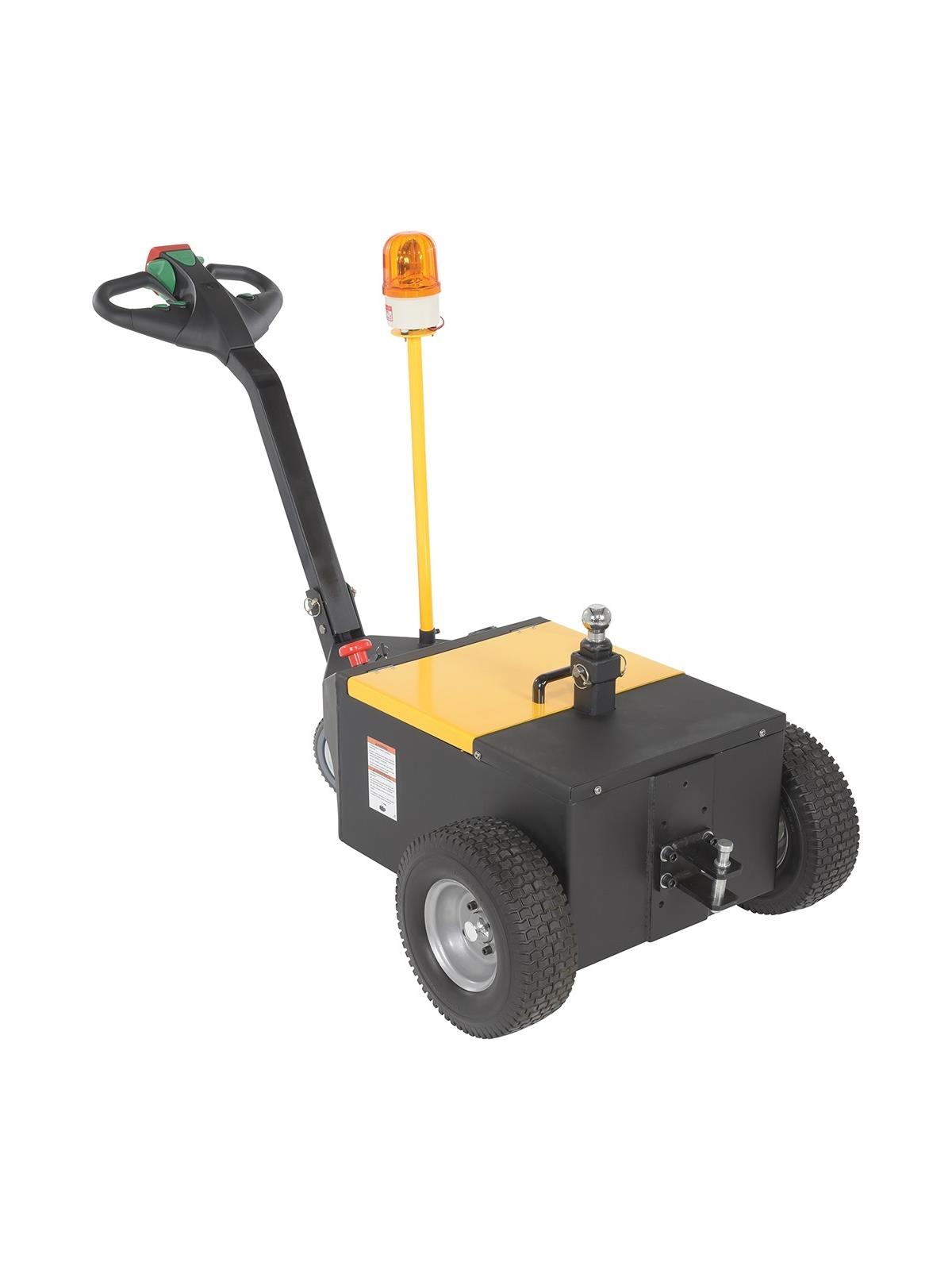 Tuggers help reduce the risk of accidents and injuries while improve handling efficiencies. High torque 24V DC drive motor handles heavy-duty jobs. Ergonomic handle features easy to operate throttle with FWD/REV speeds and horn. Includes an electromagnetic disc brake with automatic dead-man feature that activates when the user releases the handle. Includes two (2) 12V batteries, an intergral battery charger and battery level gauge. Pin Hitch is standard. FOB Shipping Point.