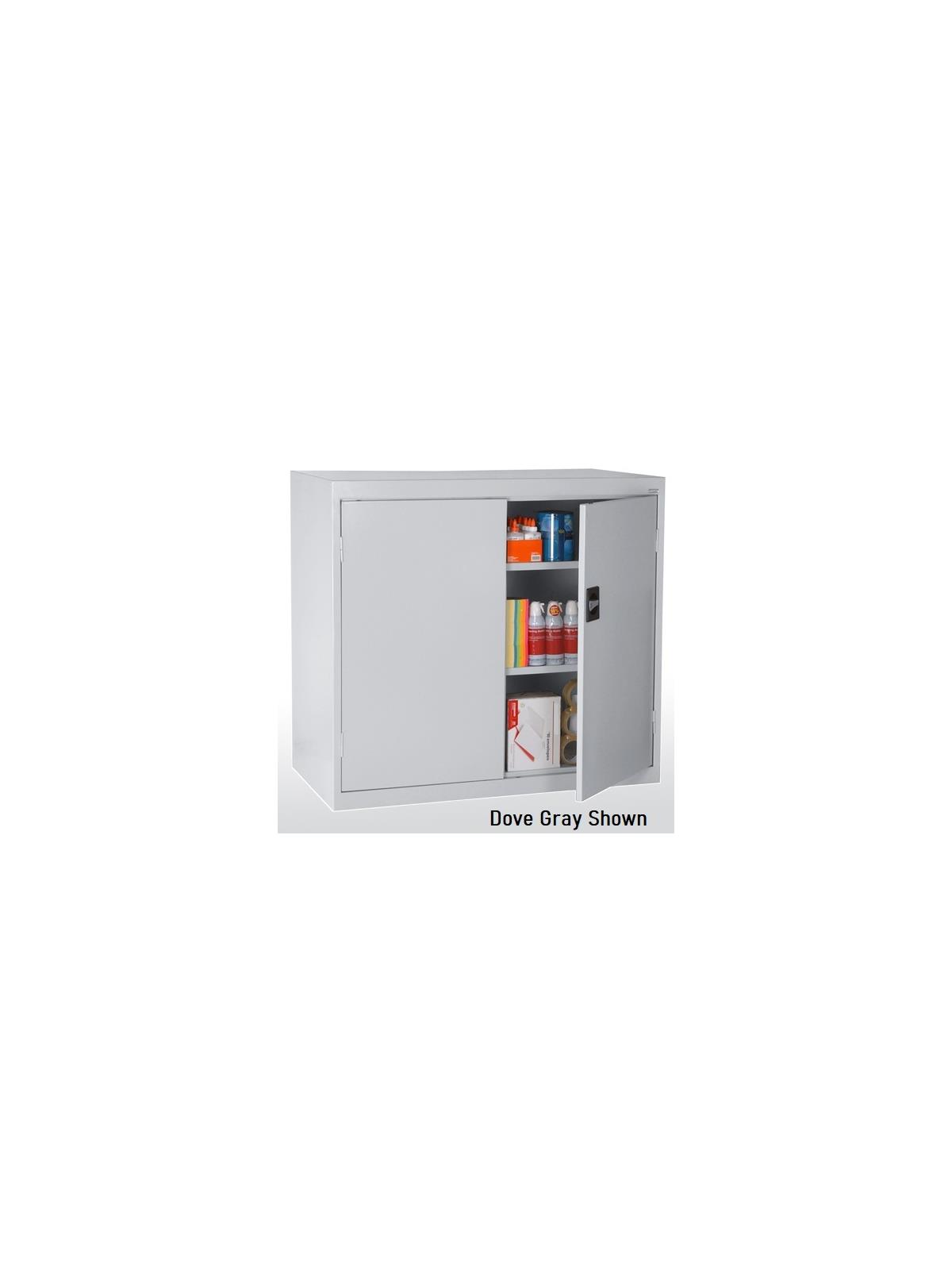 These cabinets offer a premium in design and features. Includes four fully adjustable shelves on 2" centers plus raised bottom shelf to provide for a variety of storage capacities. Features three point recessed locking handle with three hinged reinforced doors making operation smooth and sturdy. Durable finish for long lasting life. Available in five standard colors: Charcoal (-02), Dove Gray (-05), Putty (-07), Textured Black (-09), Blue (-06) and Textured Red (-01). Custom colors available for an upcharge - call for information. FOB Shipping Point.