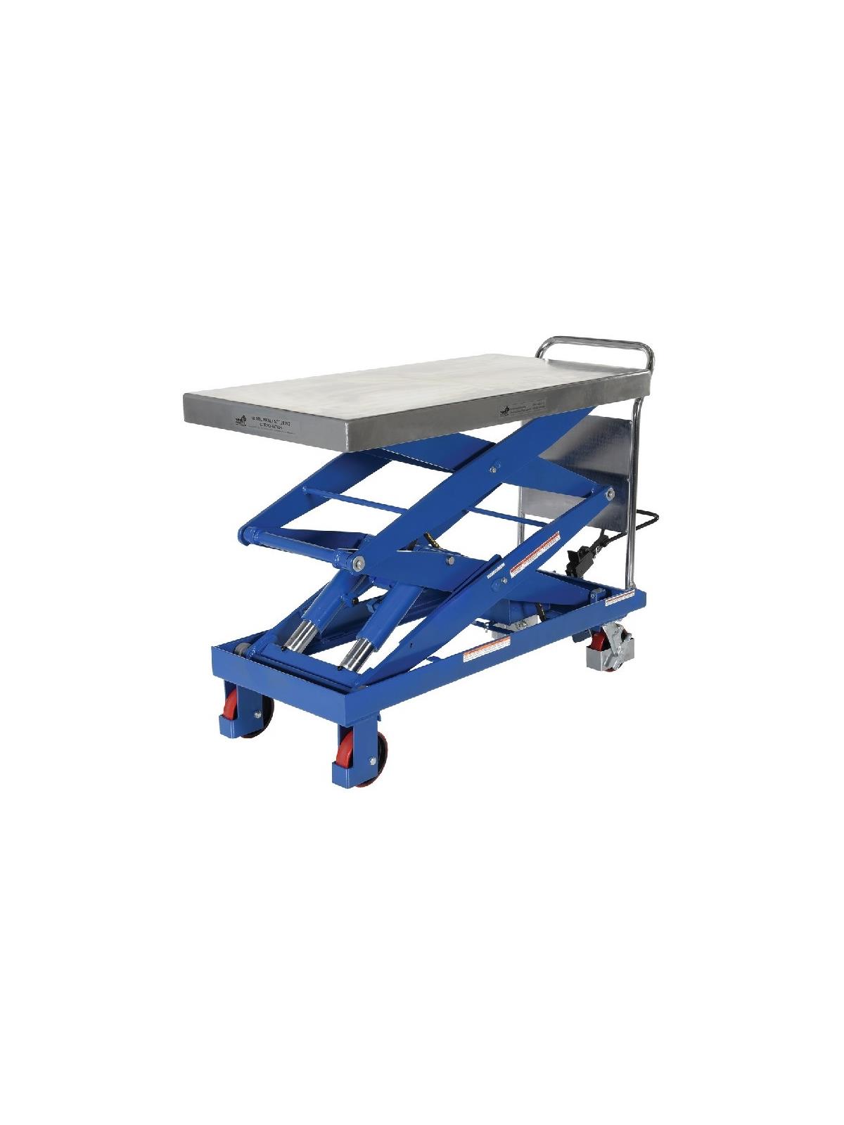 A super rugged mobile hydraulic cart for industrial use. Manually operated foot pedal pump. Durable, precisely engineered hydraulic cylinders. Easy mobility on polyurethane (2 rigid, 2 swivel with brakes) casters. Standard with a Chrome Plated Platform except HCART-2000. Models with suffix TS feature two speed foot pumps. FOB Shipping Point.