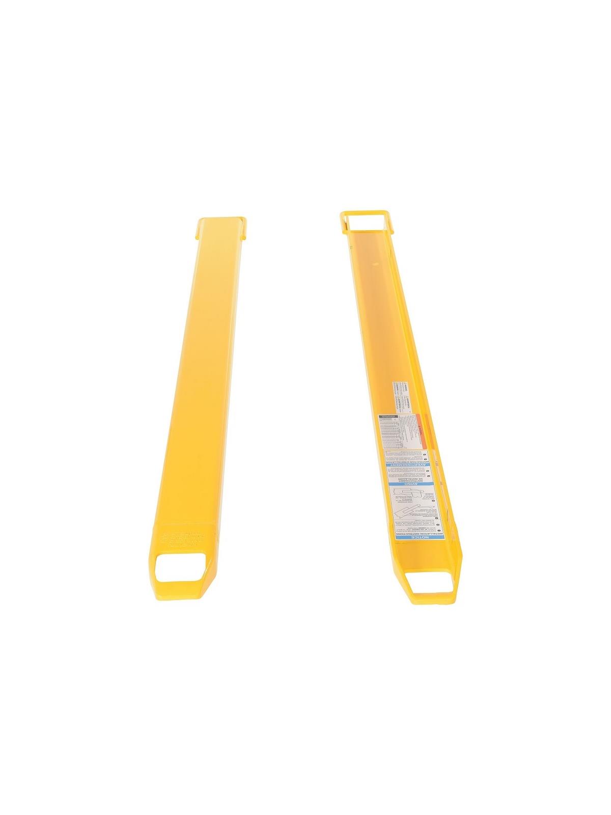 Rugged and durable welded steel construction with cast steel fork tips. Steel retaining strap prevents fork extensions from sliding off forks during use. Extensions are put on by sliding them up the fork at a 45° angle. OSHA regulations require that extensions are no more than 150% of the existing fork length. Powder coat Yellow finish. FOB Shipping Point.