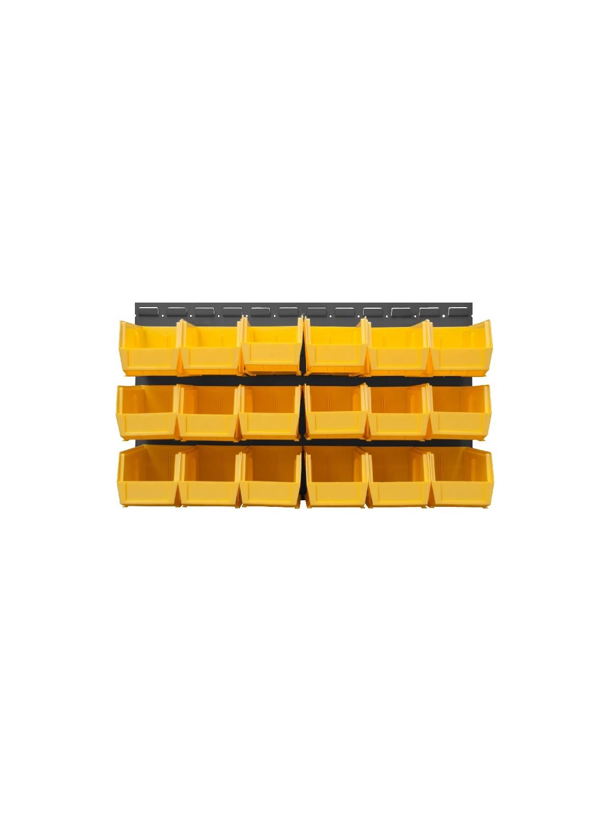 Louvers accommodate all sizes of Hook-On-Bins® (Bins are sold separately.) Tray shelves can be purchased as an accessory 1/4" holes for wall mounting - hardware not included. Durable, textured, powder coat finish. FOB Shipping Point.