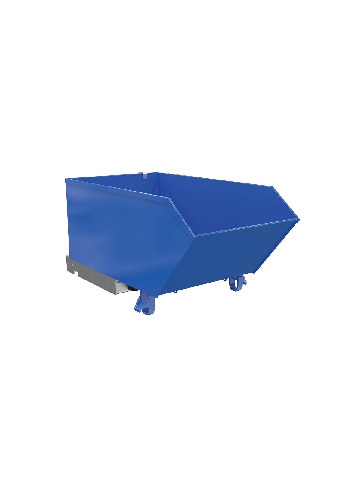 Units feature a full 90 degree dump angle with a cushioned rubber bumper stop. The low profile design is essential for convenient loading. Dumping with a fork truck is quick and simple. A cable is pulled from the seat of the fork truck to dump the hopper. The unit returns to an upright and locked position when lowered to the ground. The included safety restraint/chain must be securely attached to the lift truck without slack. 22" L usable fork pockets measure 7" W x 2"H. Formed base thickness is 1/4". Blue baked-in powder-coated toughness with a galvanized base. Other colors available-contact factory. Models H-25 may be stacked with H-50 models, while the H-100 can be stacked with the H-150 models. The H-200 hoppers can only be stacked with other H-200 series models. Must be attached to fork truck when dumping. FOB Shipping Point.