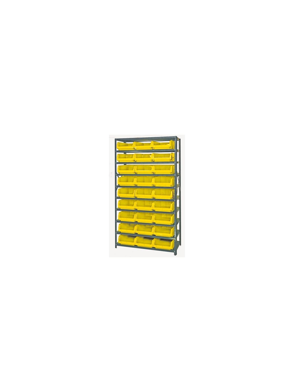These ultra heavy-duty shelving systems incorporate Giant Hopper Bins. Five combinations solve any storage requirements. Bins offer optional clear window fronts as well as dividers for maximum storage capacity. Shelving is tough 42"W. with a 475 lb. capacity per shelf. Smooth powder coat finish won’t rust or corrode. Bins available in Blue, Yellow, Green, Red or Black. FOB Shipping Point.