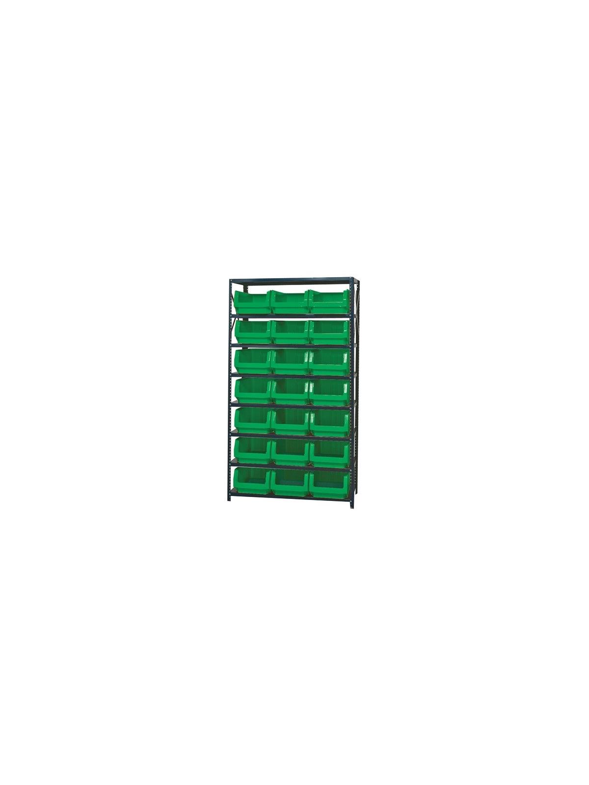 These ultra heavy-duty shelving systems incorporate Giant Hopper Bins. Five combinations solve any storage requirements. Bins offer optional clear window fronts as well as dividers for maximum storage capacity. Shelving is tough 42"W. with a 475 lb. capacity per shelf. Smooth powder coat finish won’t rust or corrode. Bins available in Blue, Yellow, Green, Red or Black. FOB Shipping Point.