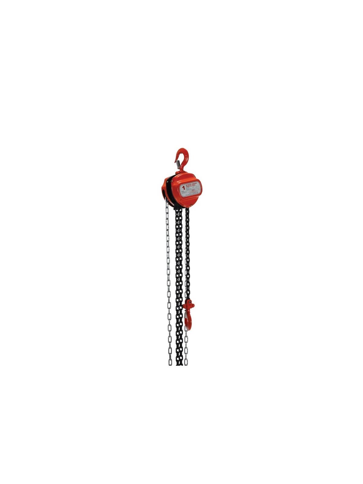 Superior safety factory rated 4 times capacity. Very low headroom. Tested at 150% rated capacity. Grade 80 black chain tempered to ISO 3077. Galvanized pull chain. Hardened 2-stage gears and hardened pinions supporting roller bearing shears. Capacities available up to 10,000 lbs. -- call for details. Meets ASME B30.16 Standards. FOB Shipping Point.