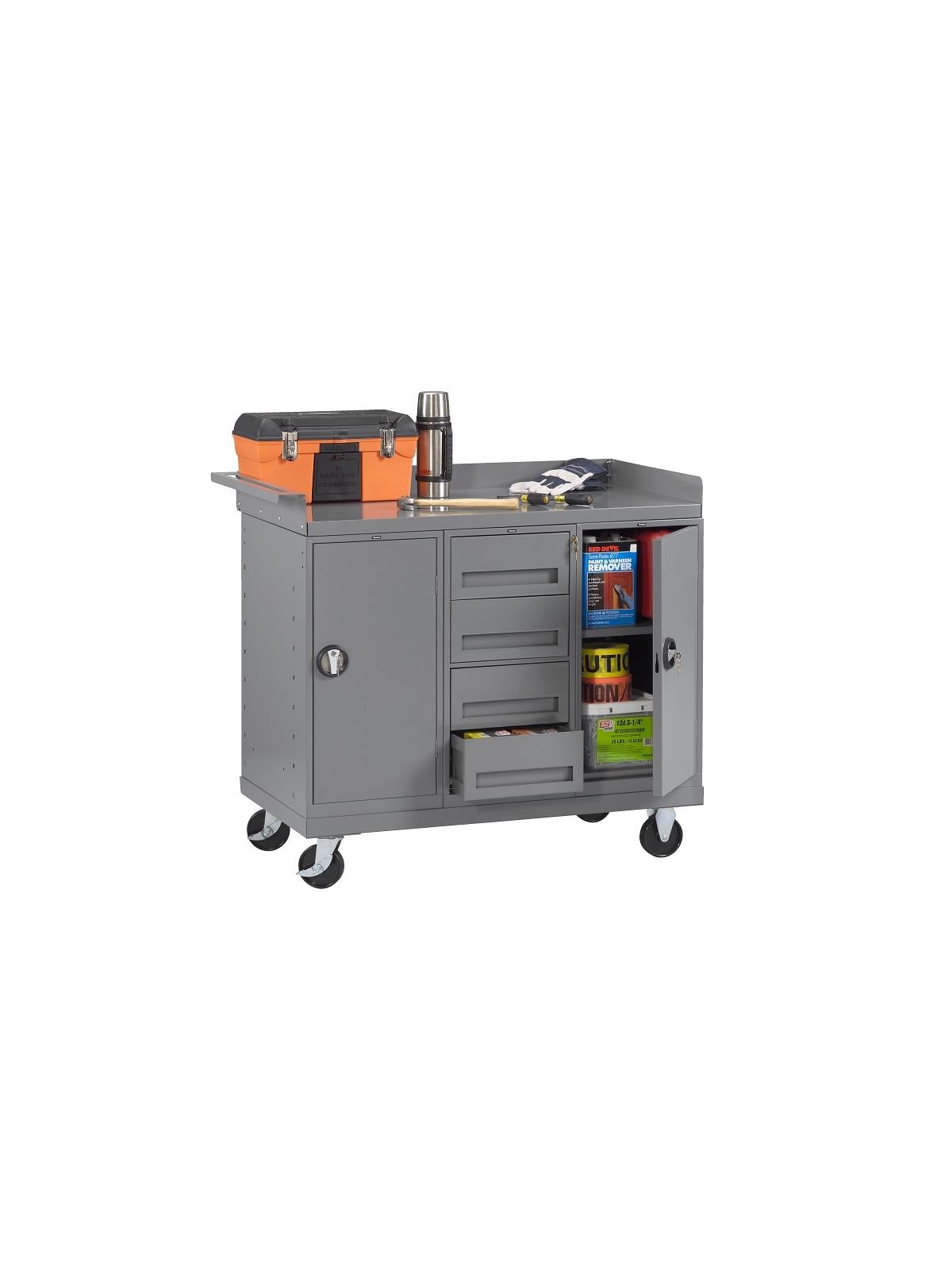 Description Mobile Workbench with 2 Door Cabinets and 4 Drawers