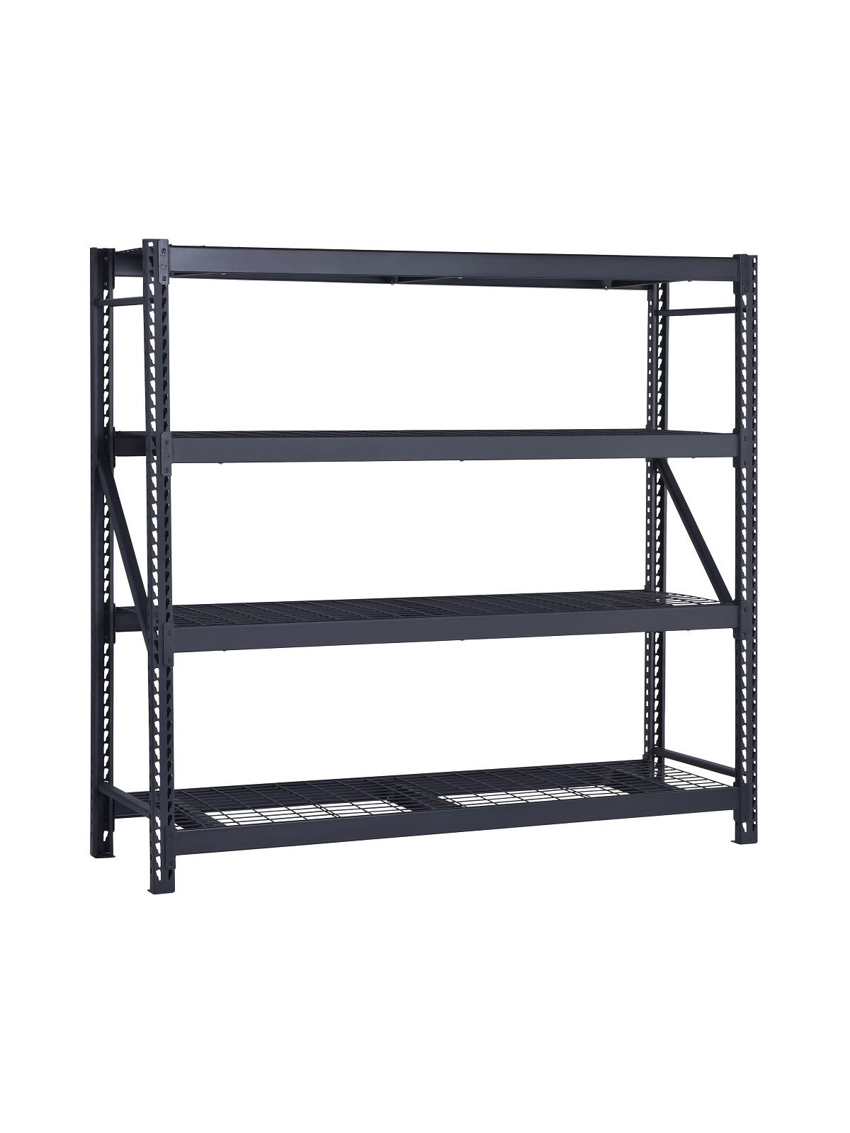 Muscle Rack bridges the gap between pallet rack and conventional industrial shelving. Heavy-duty 16-gauge all welded upright frame punched on 3" centers for maximum beam adjustability. Each shelf features 16-gauge step beams plus tie bars to prevent beam rotation. Wire decking provides strength and visibility. FOB Shipping Point.